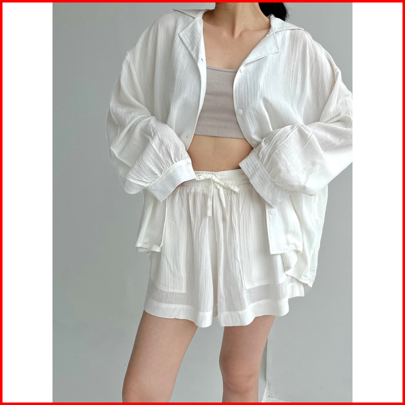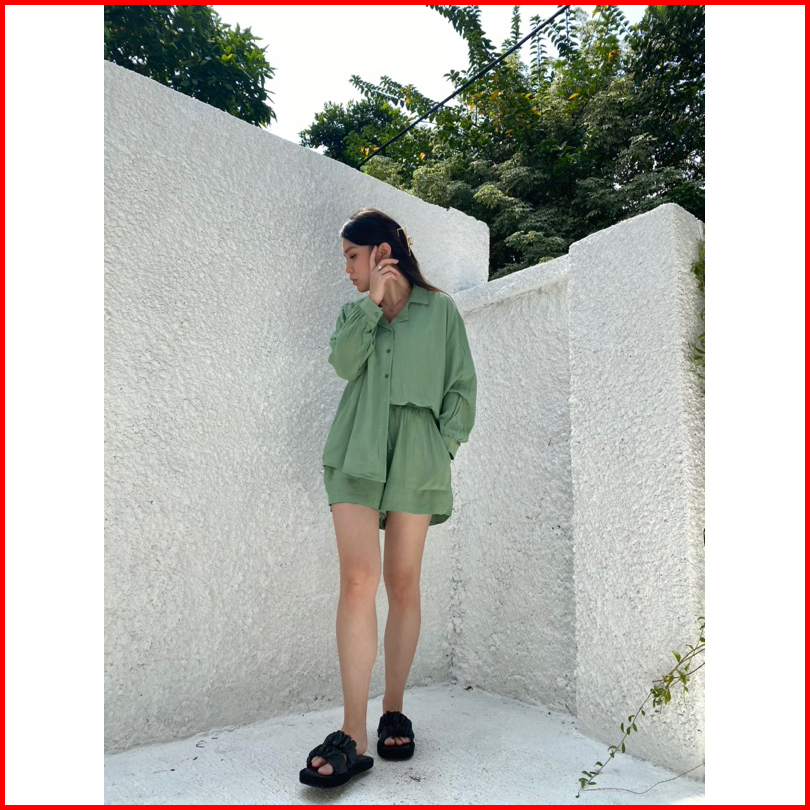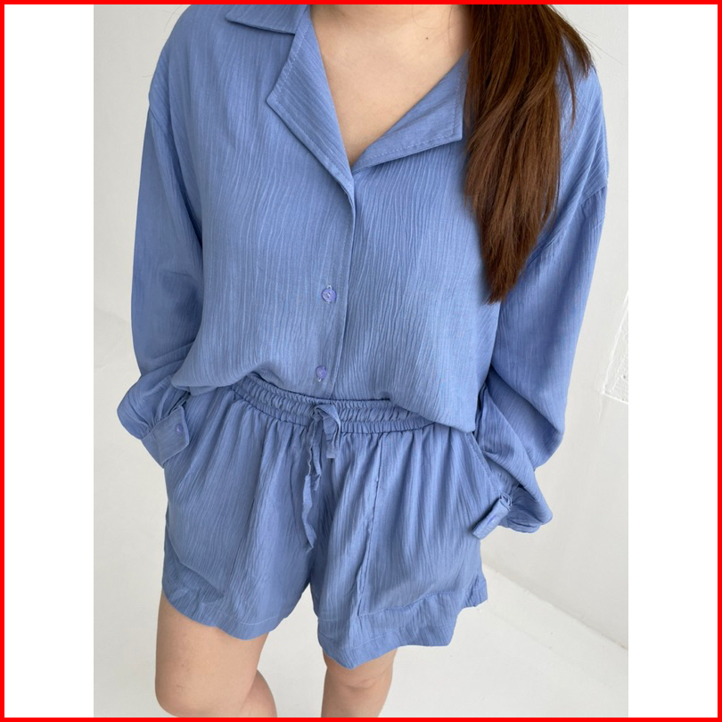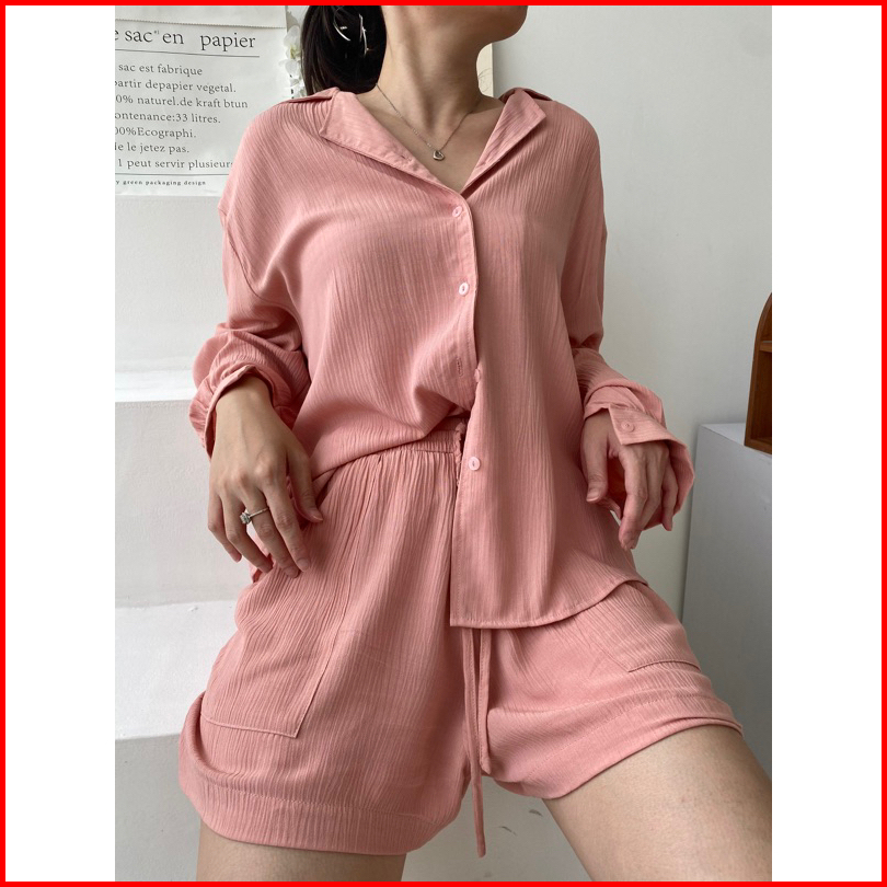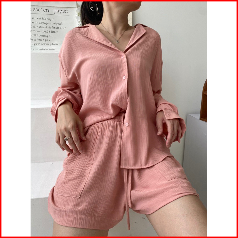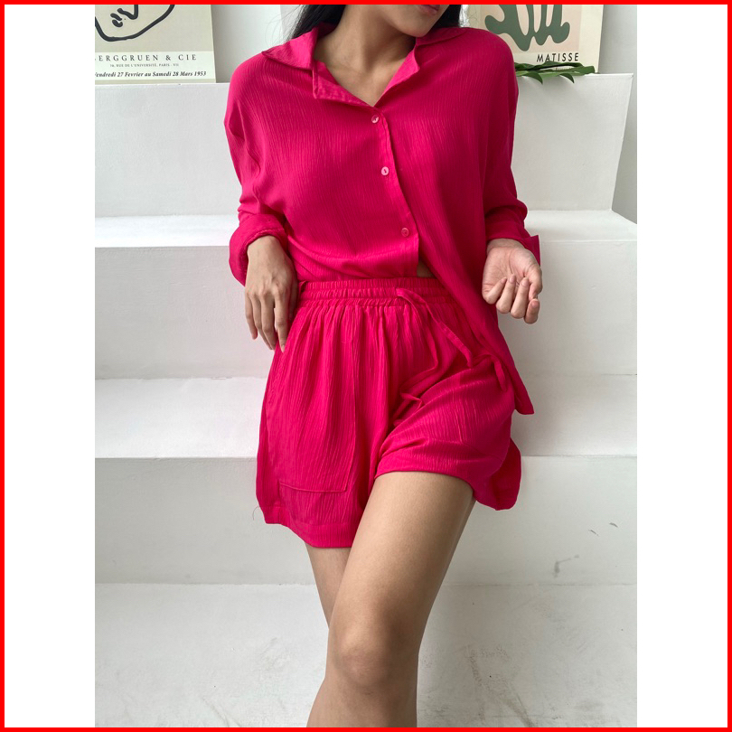 Celi - Carla Set Pakaian Wanita Kemeja Setelan Crinkle Santai Celana Pendek Pink Fuschia Putih Biru Sage Dusty Pink Nyam