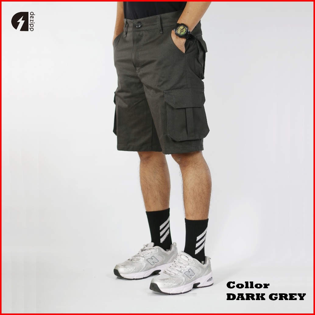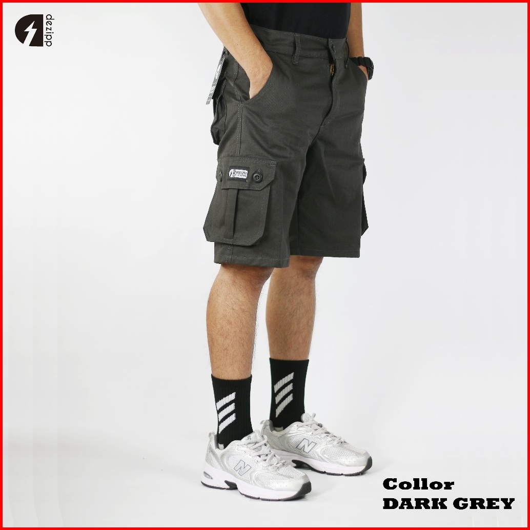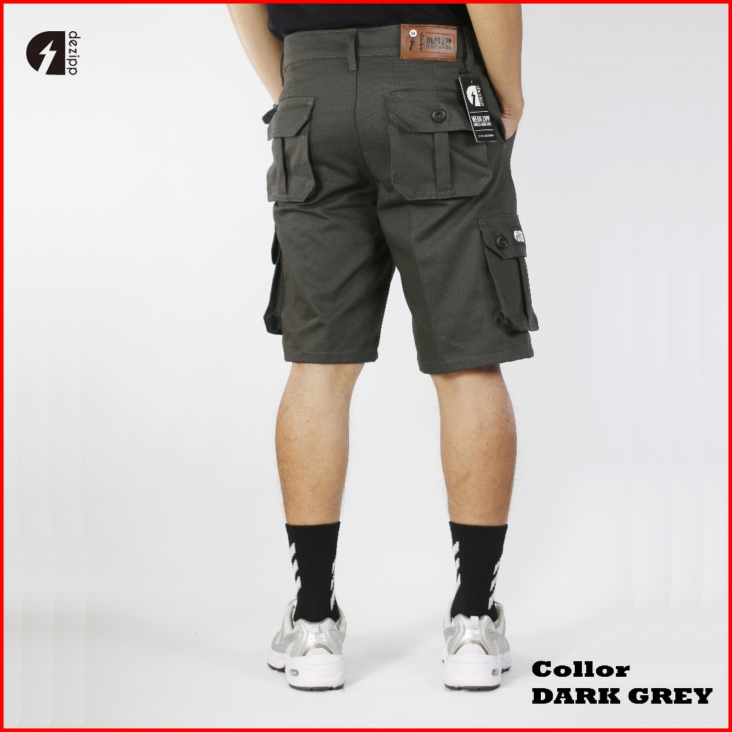 Dezipp Celana Cargo Pendek Pria Original Warna Abu Tua Size 27-42 Bahan Premium Quality Celana Kargo