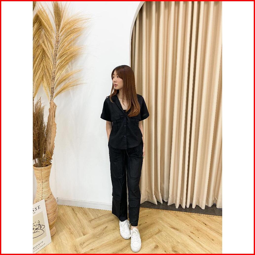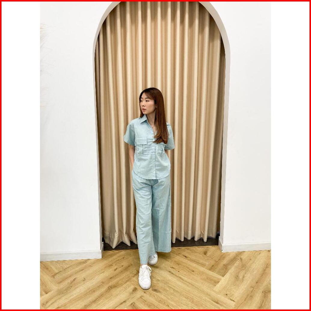 Joshin Kemeja Setelan Wanita Dewasa - Set Linen Kekinian Celana Kulot