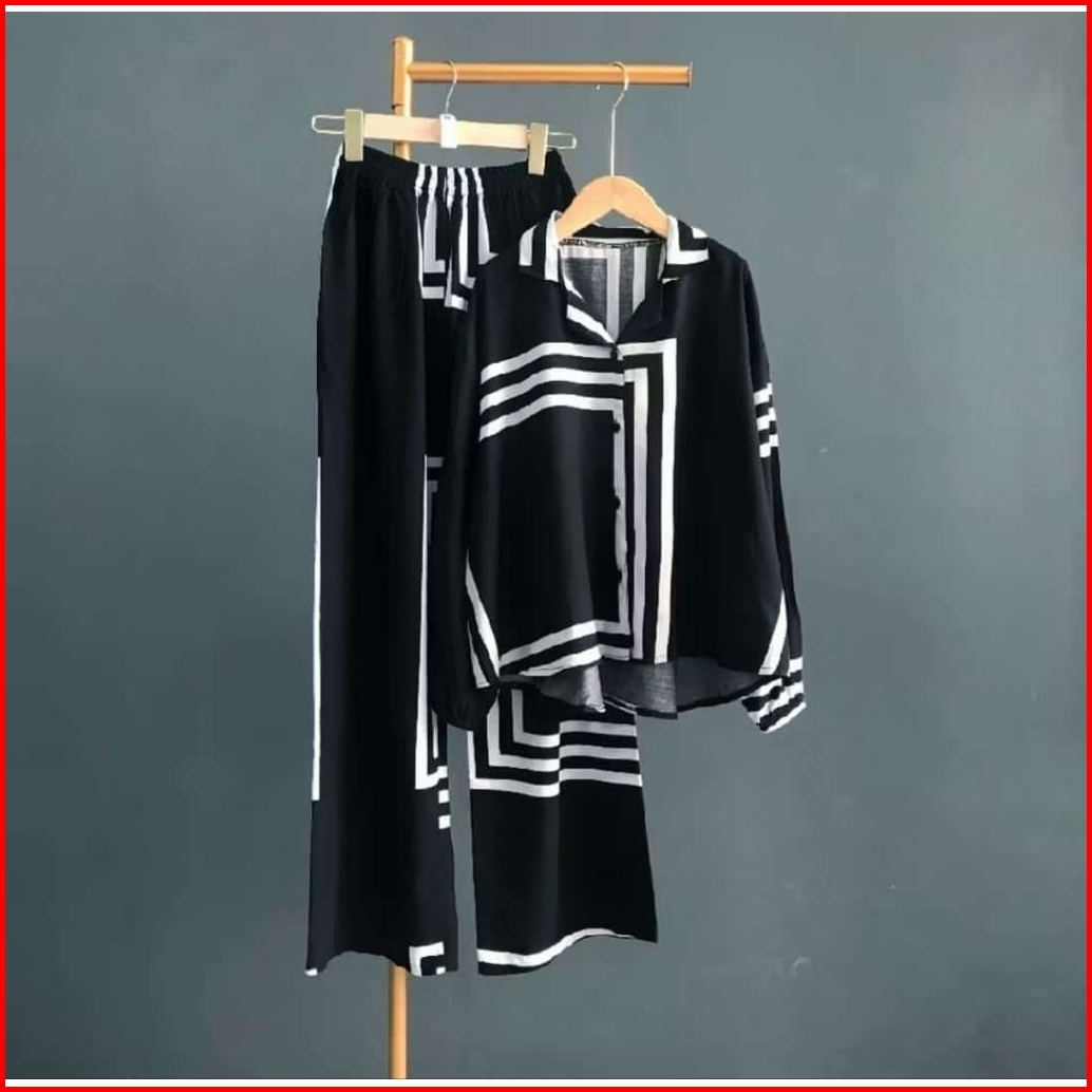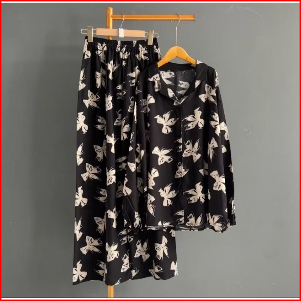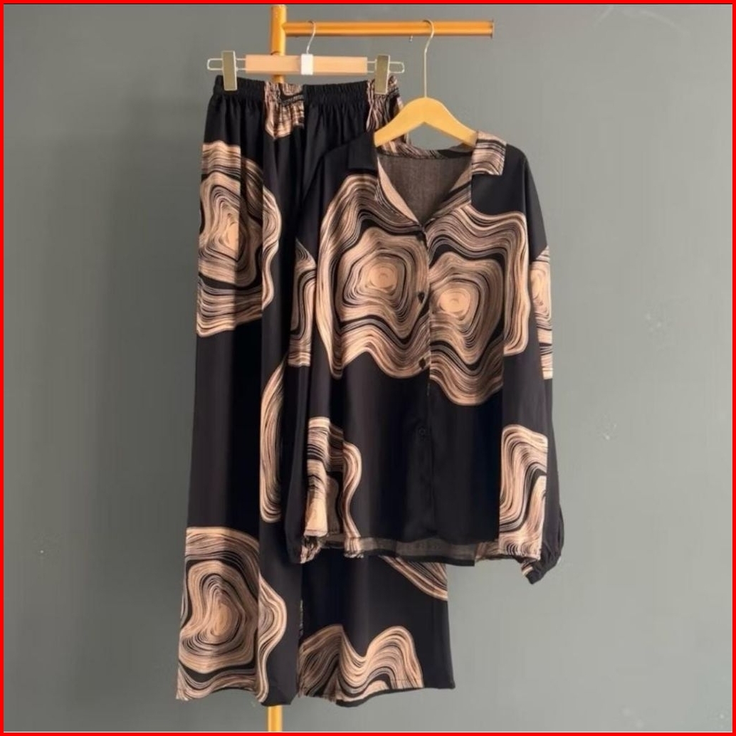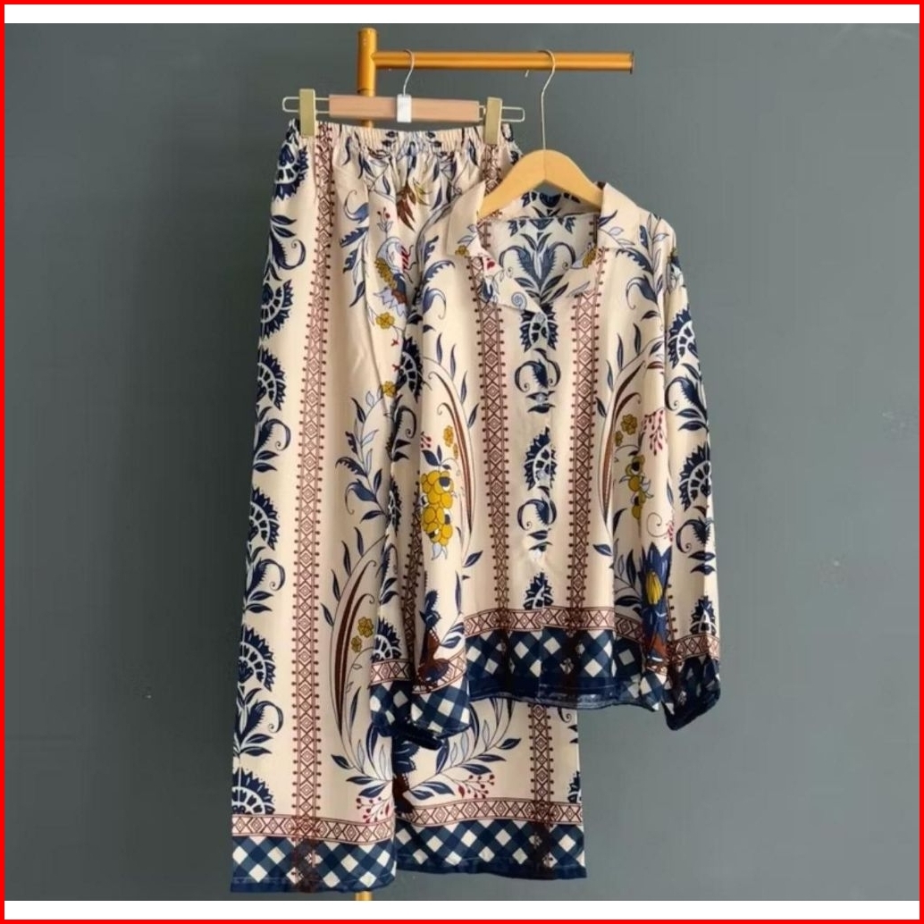 Setcel Kemeja Xxl Ld120 Setelan Motif Katun Rayon Premium Outfit Wanita