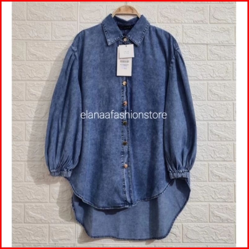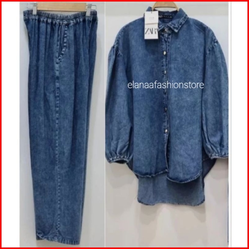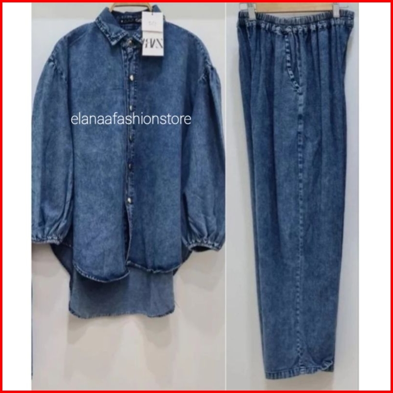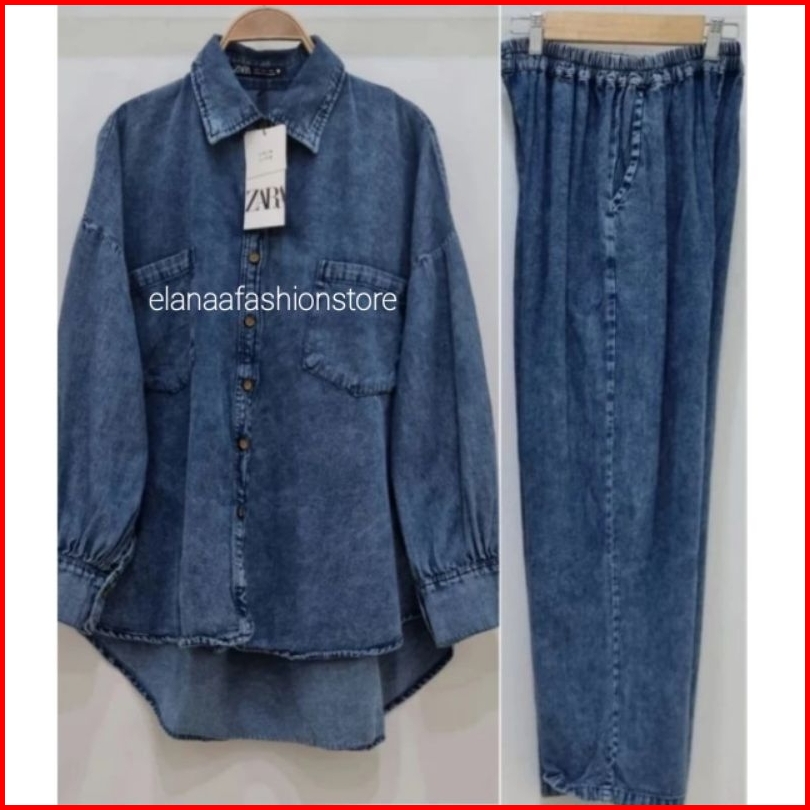 Setelan Kemeja Jeans Wanita Oversize Ootd Oneset Kemeja Jeans Premium