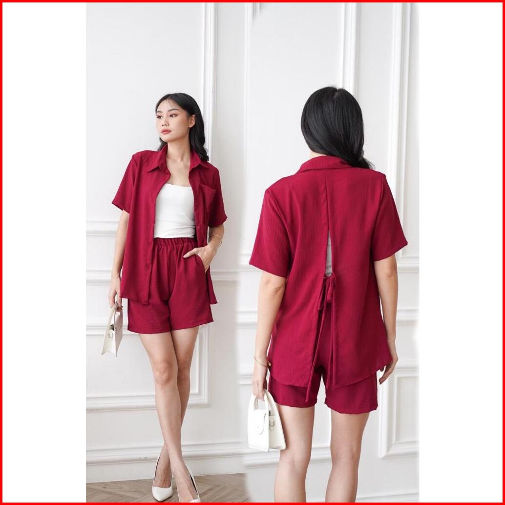 Toply Shop Setelan Kemeja Celena Pendek Hotpans Cey Krinkle Setelan Wanita Korean Style