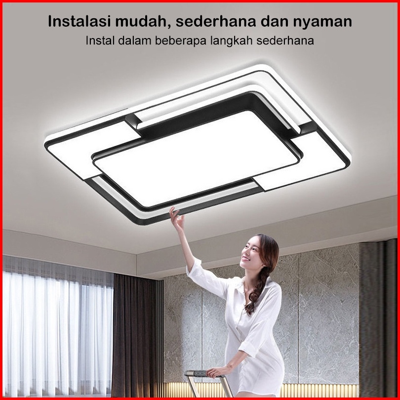 90 60cm Remotelampu Plafon 3 Warna Led 98w Modern Minimalis Bentuk Persegi Gaya Nordic Untuk Dekorasi Ruang Tamu Kamar T