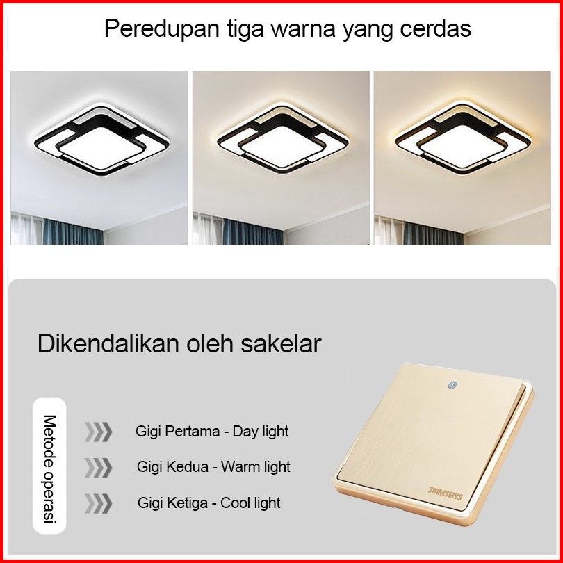 Golden Led Lampu Plafon Led 3 Warna Bentuk Persegi Gaya Nordic Minimalis Untuk Dekorasi Ruang Tamu Kamar Tidur