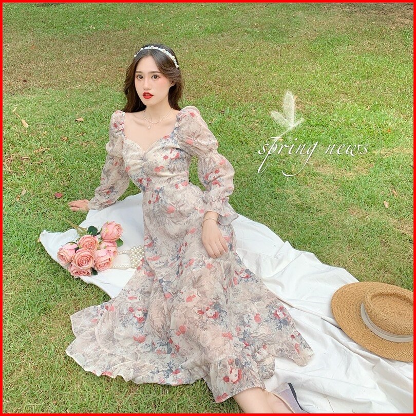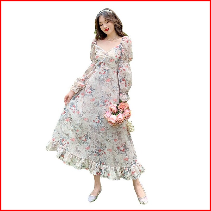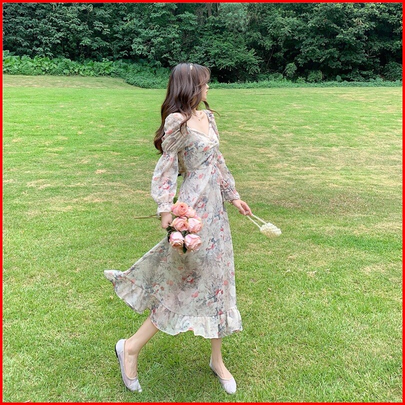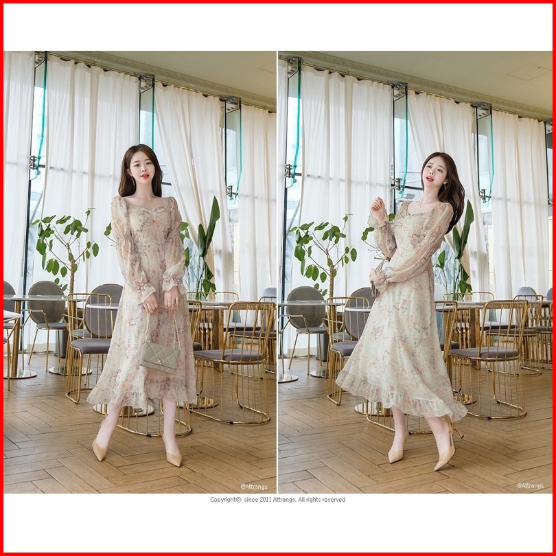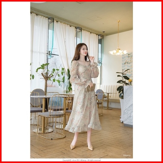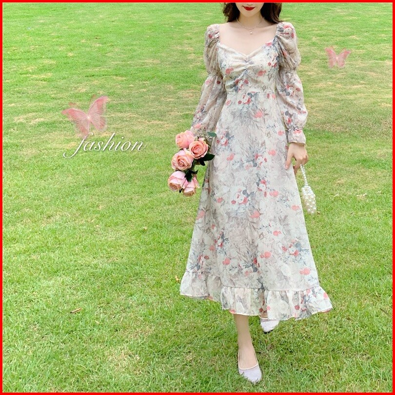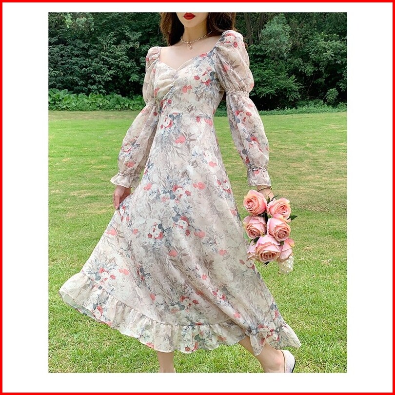 D0473 Tiffany Korean Style Floral Vintage Midi Dress Pantai Hijab Friendly