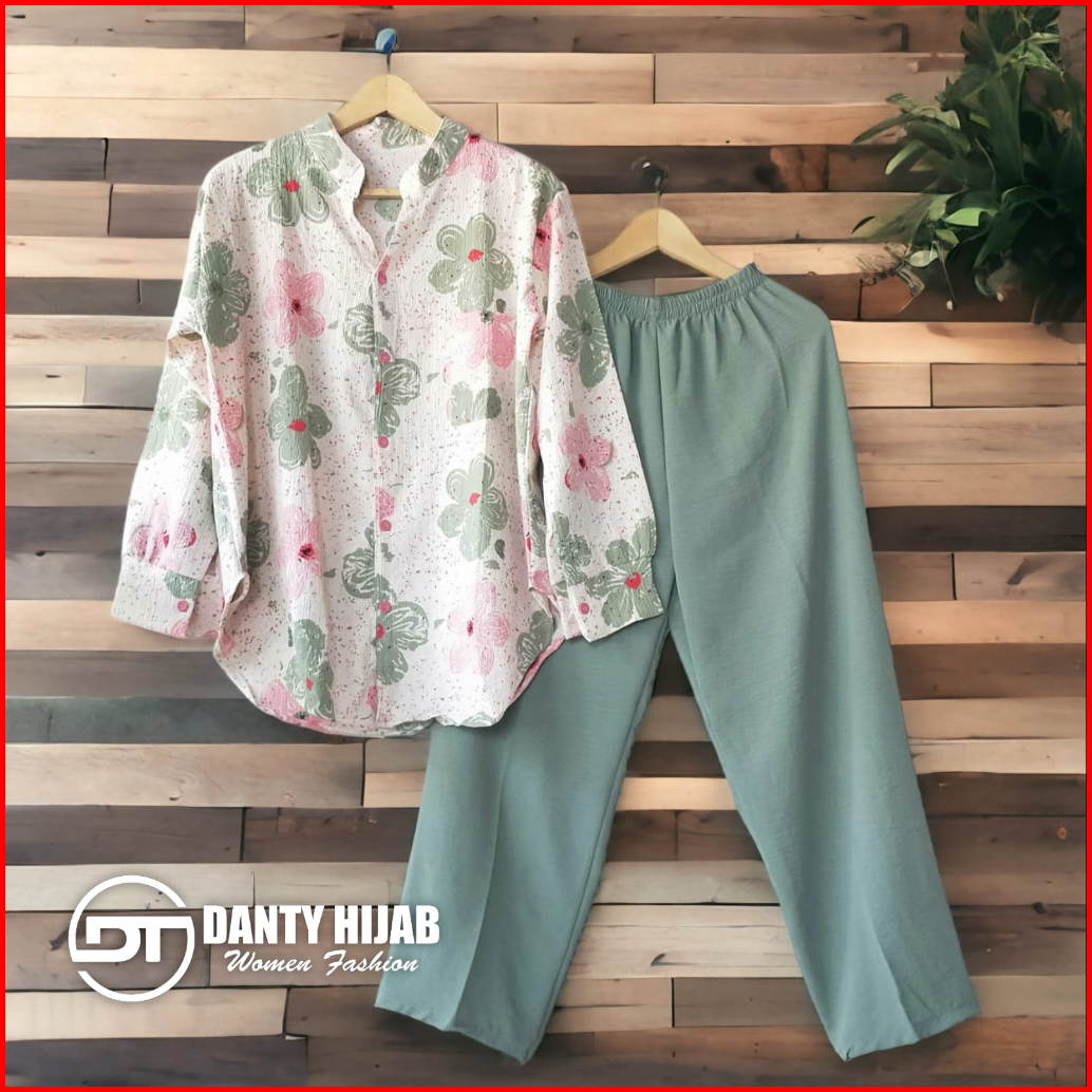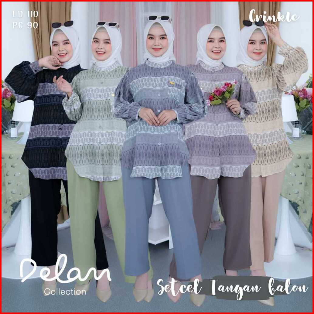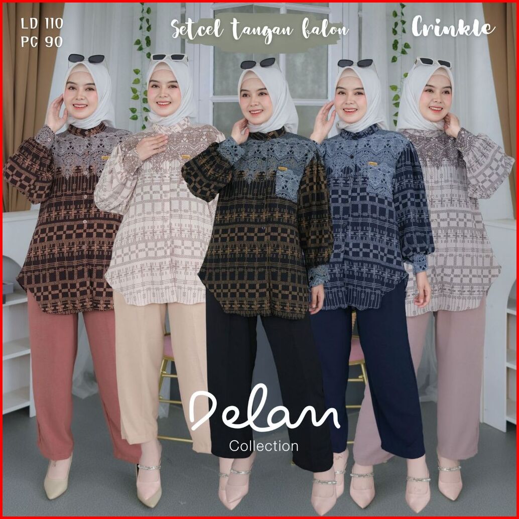 One Set Madona Crinkle Airflow Setelan Kotak Crinkle Airflow Atasan Kemeja Plus Celana