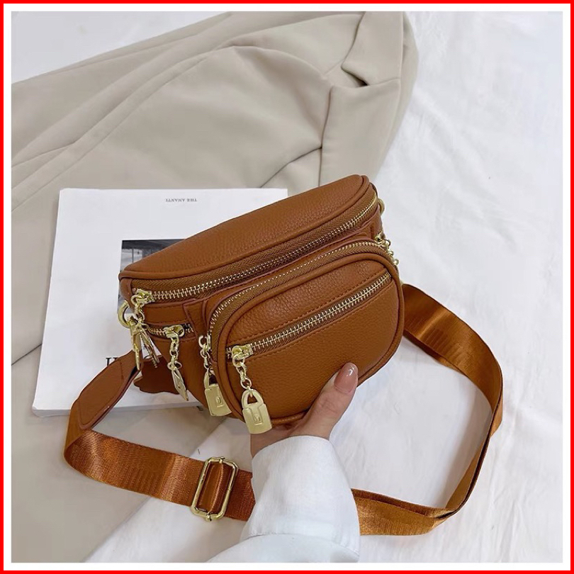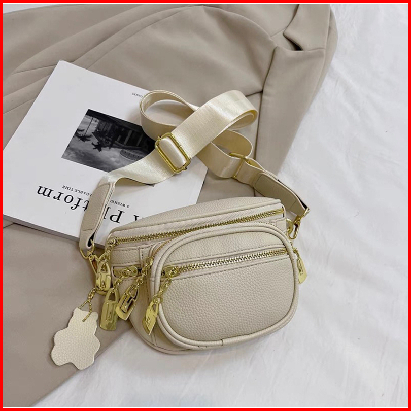 Ibags Tas Waist Wanita Fashion Korea 6440 Beige Khaki Hitam