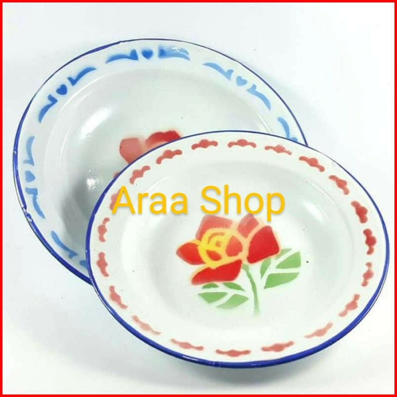 12pcs Piring Enamel Kembang 22cm Piring Makan Jadul Seng Kaleng Belirik Bunga 22 20 18 16 Cm Piring Makan Bulat Hijau Bl