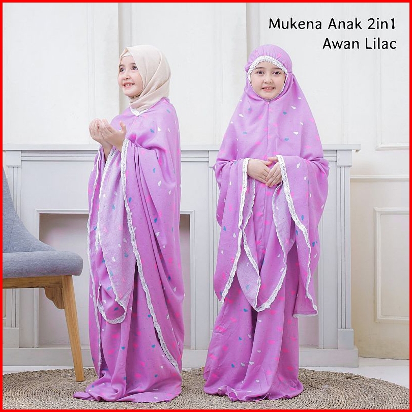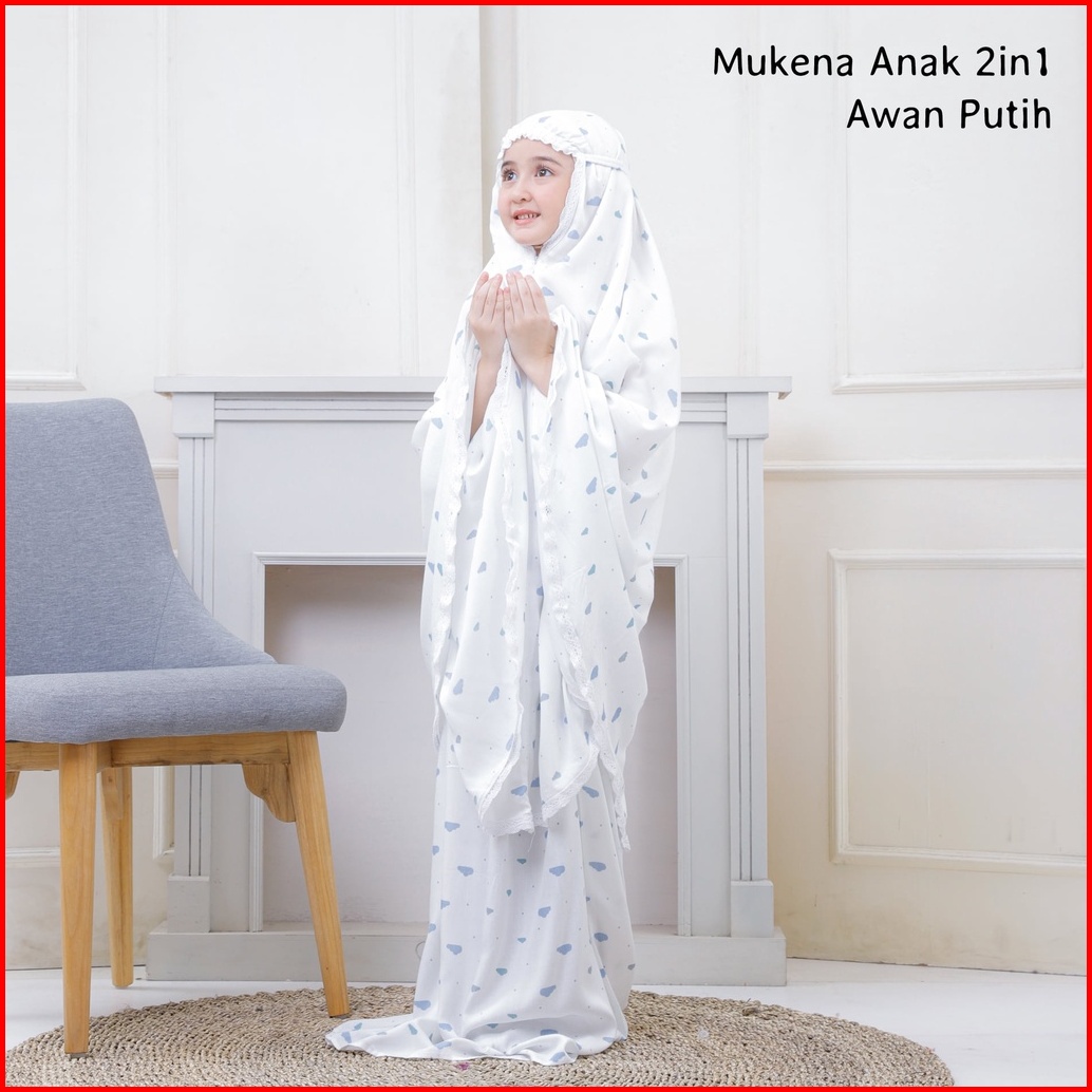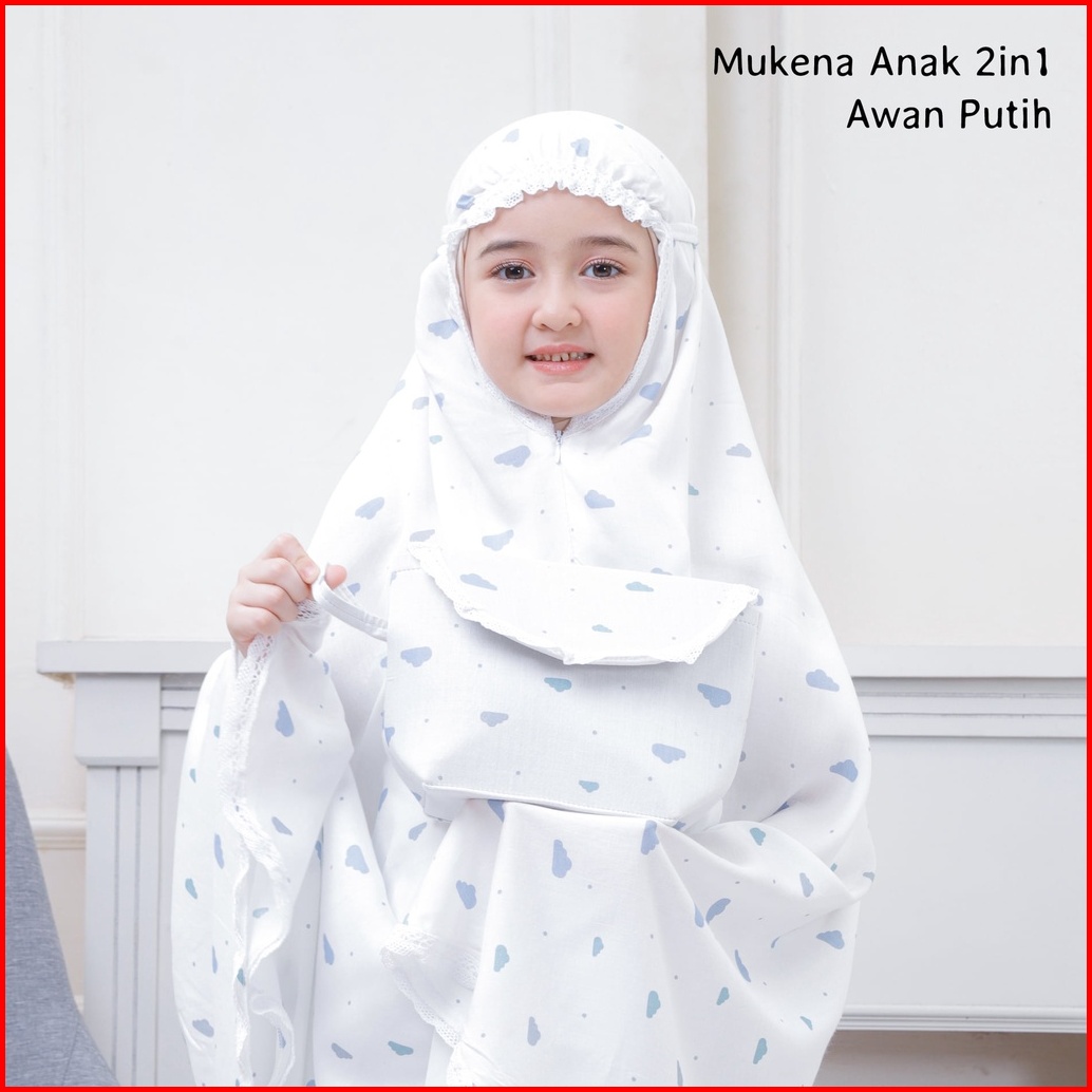 Pusat Mukena Indonesia - Mukena Anak Tanggung 2in1 Rayon Motif Awan