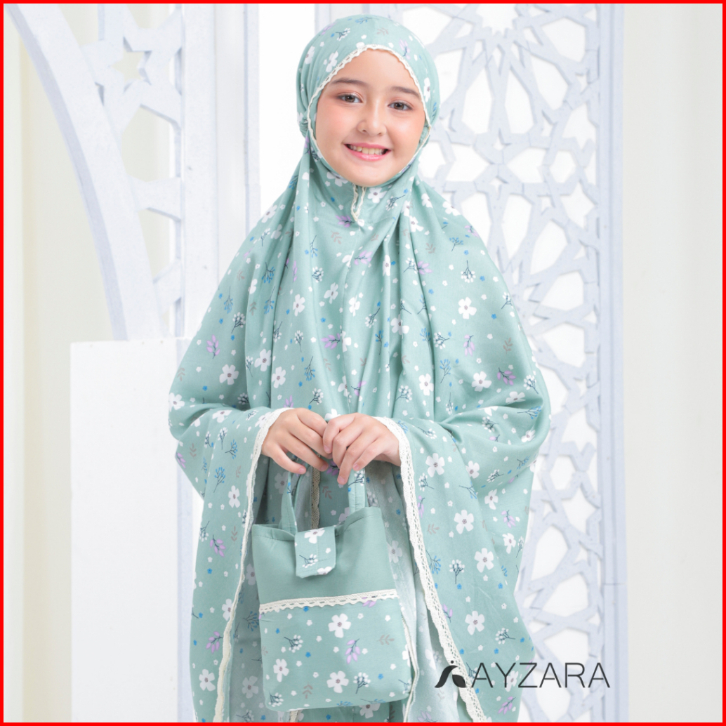 Ayzara - Mukena Anak Rayon Renda Saliha Mukenah Katun Rayon Motif Premium Umur 8 -13 Tahun