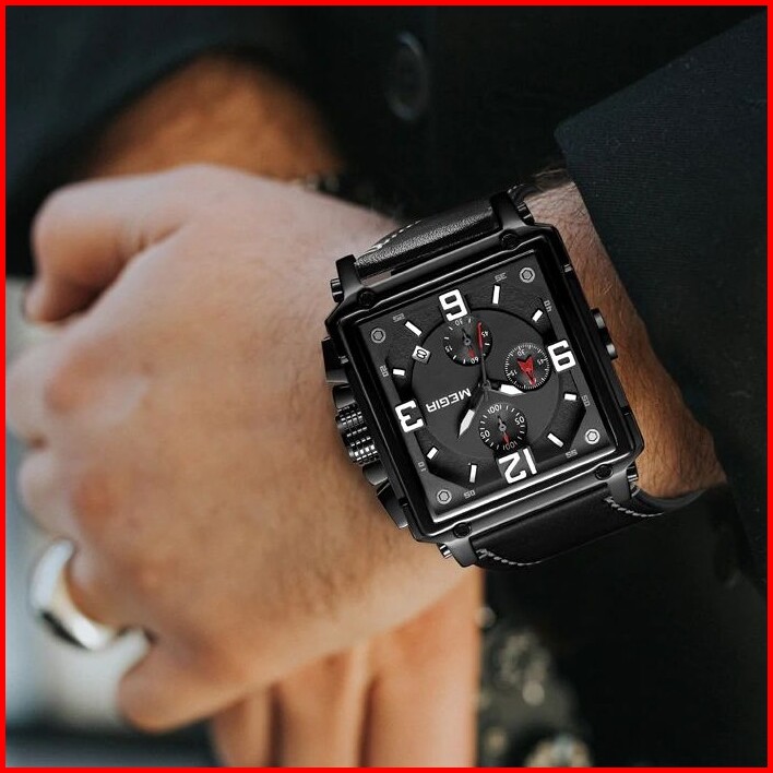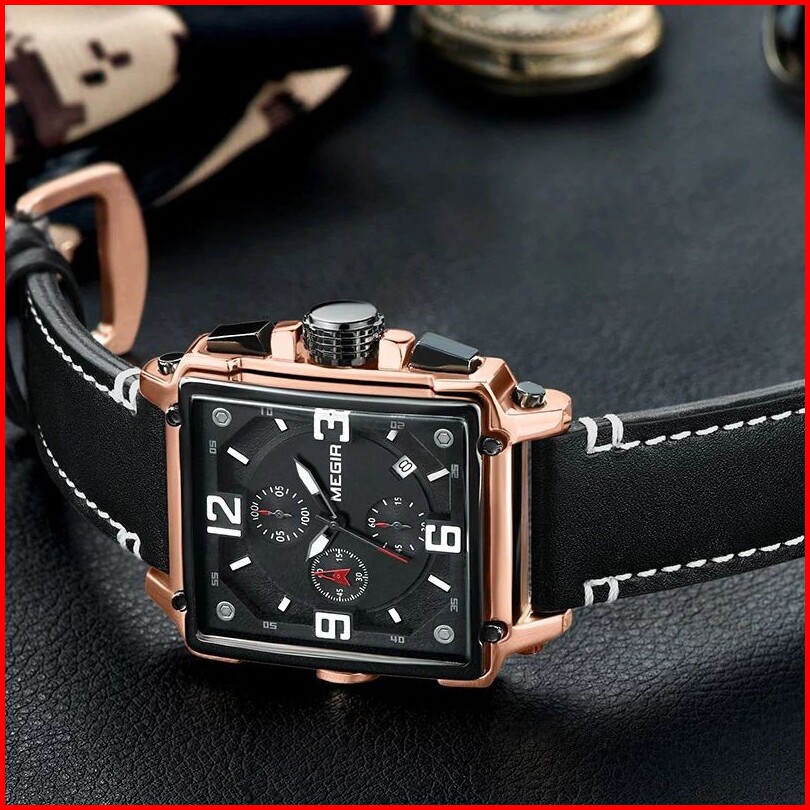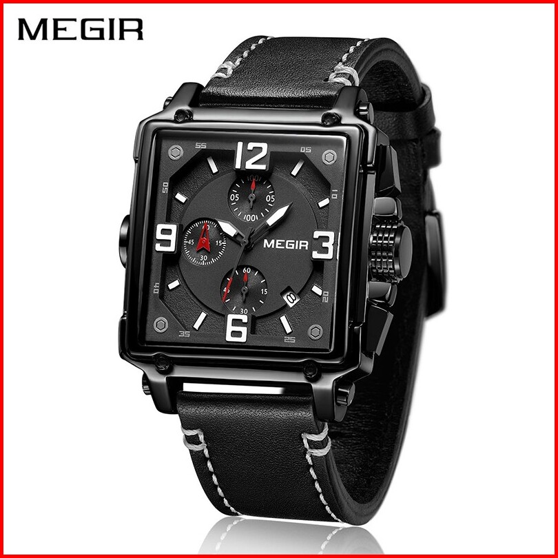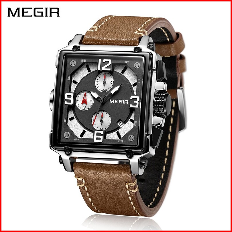 Megir 2061 Jam Tangan Pria Analog Chronograph Tali Kulit Mgos