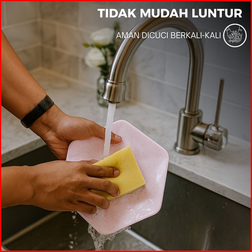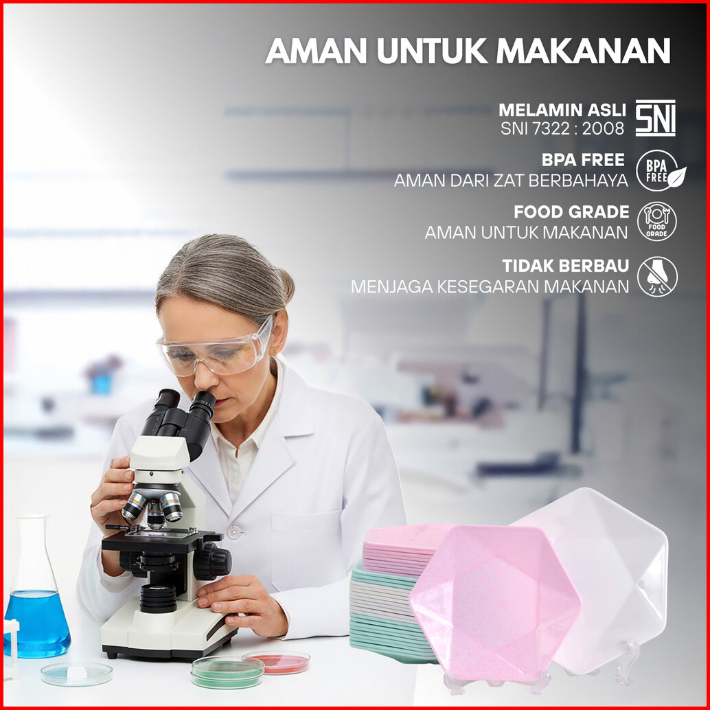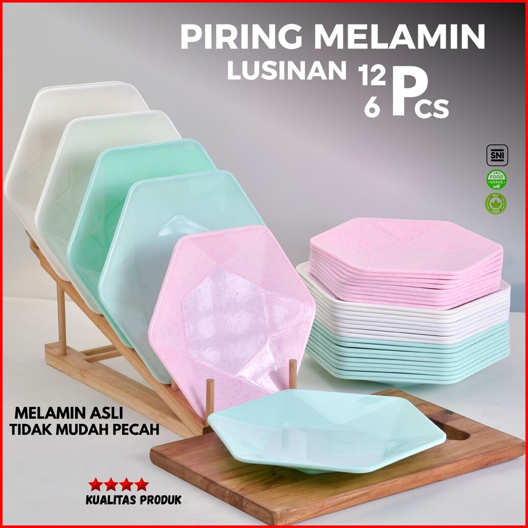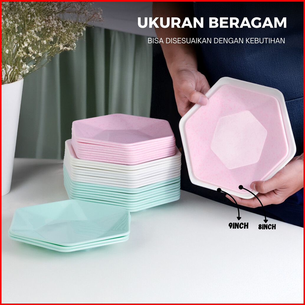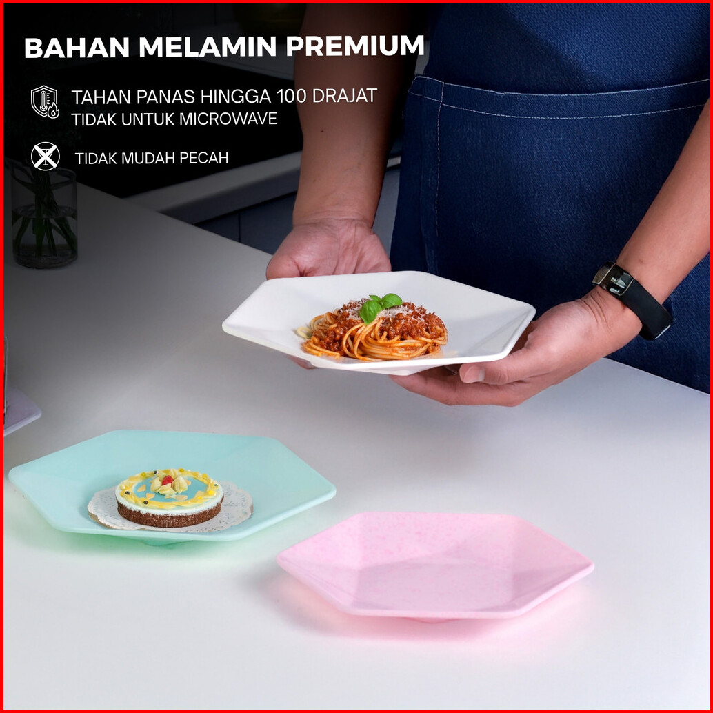 Piring Melamin Saji Segi Enam Lusinan 6 12pcs Tahan Panas - Saji Kue Buah Warna Pastel