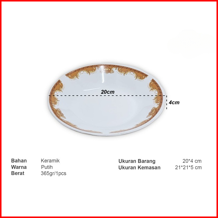 Mulya Jaya Lusinan 12pcs Piring Makan Keramik 8inch