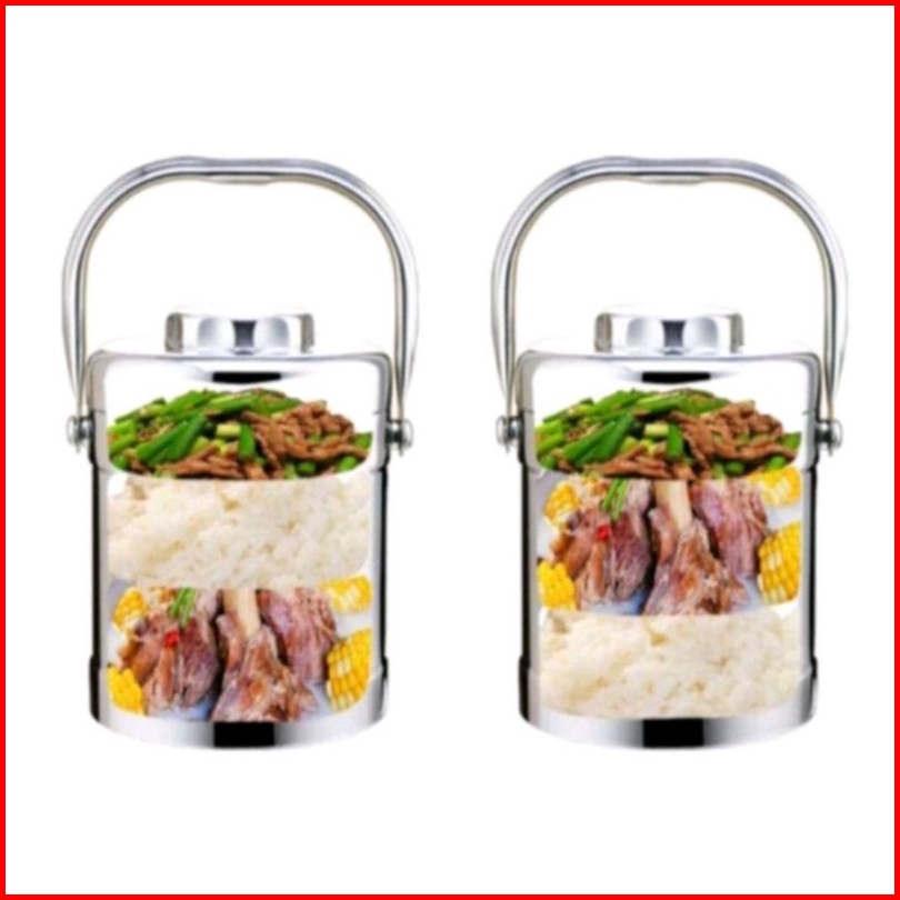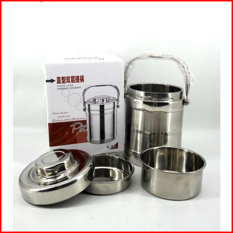 Rantang Stainless Stell 2 2 Liter Handle Cooker Double Layer Tempat Nasi Bekal Stainless Anti Tumpah 1 4 Liter 1.6 Liter