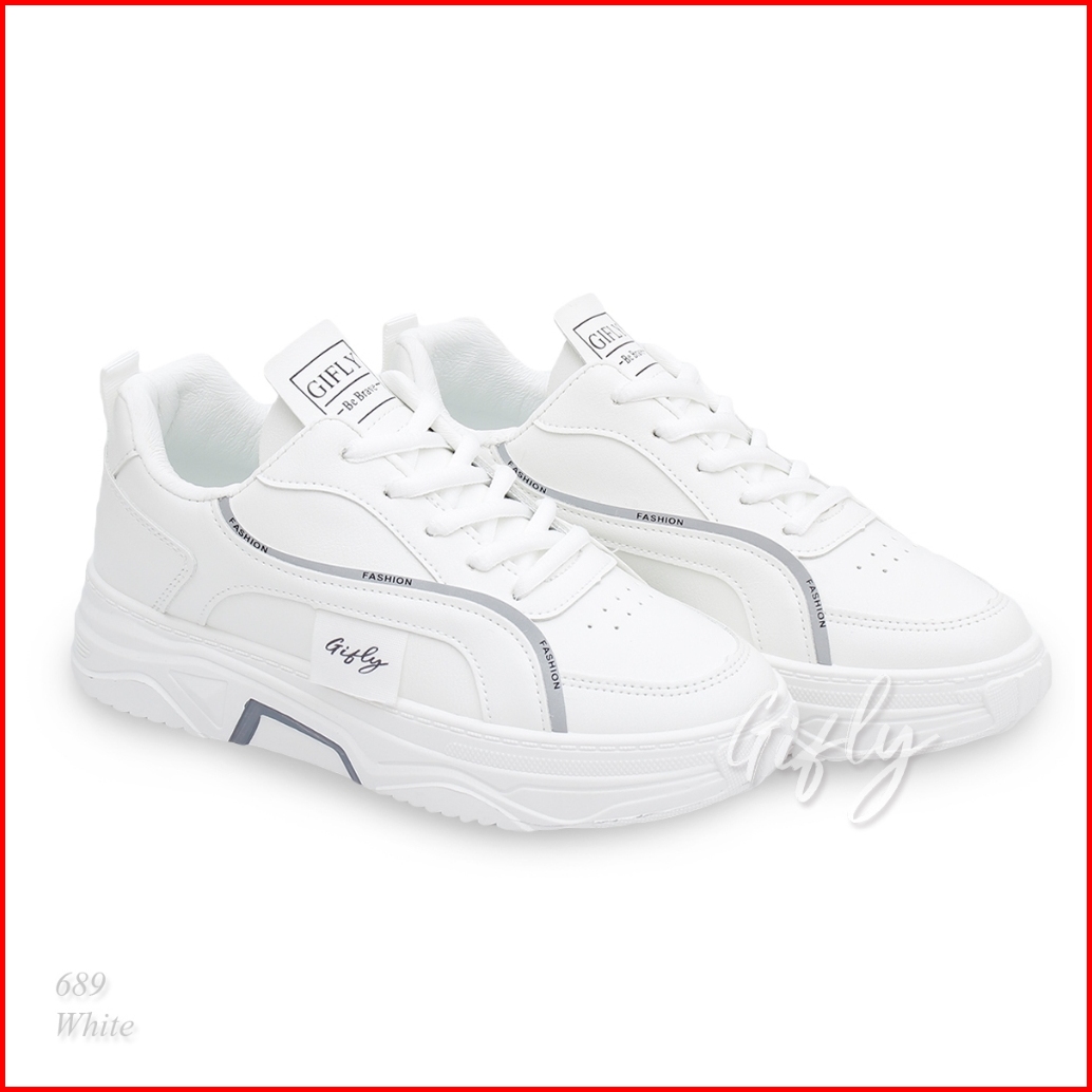 Gifly Delian Sepatu Sneakers Wanita Kets Putih Hitam Sport Shoes White Black 689