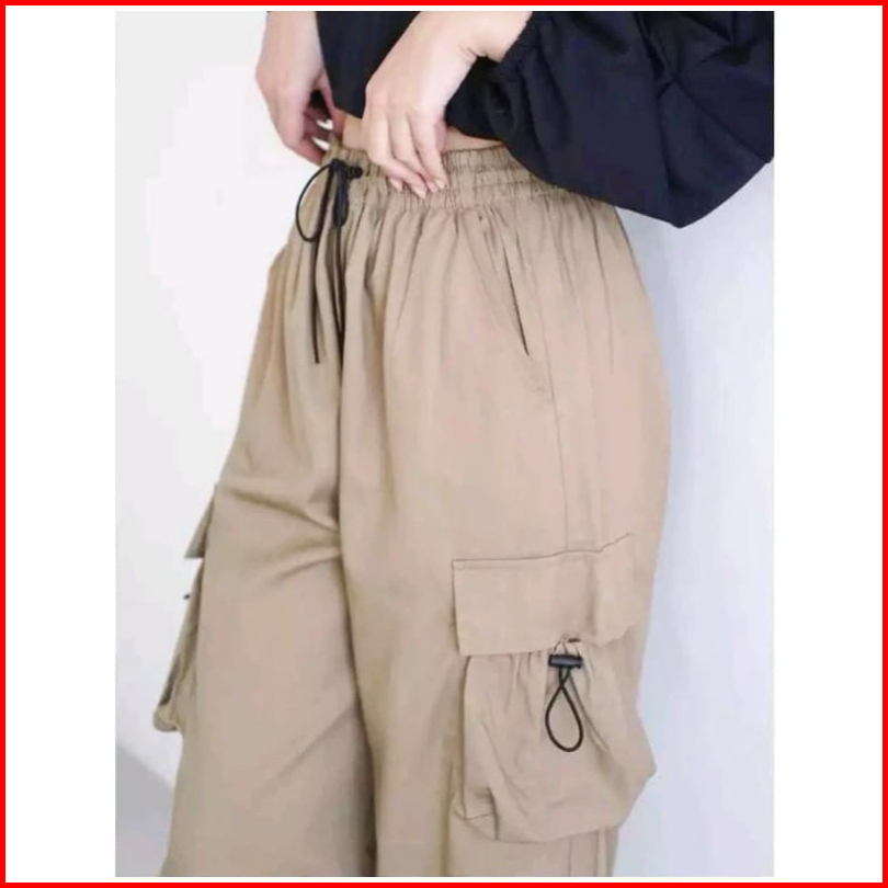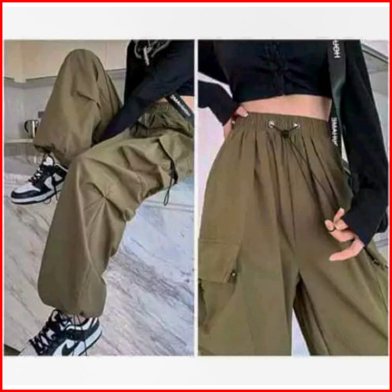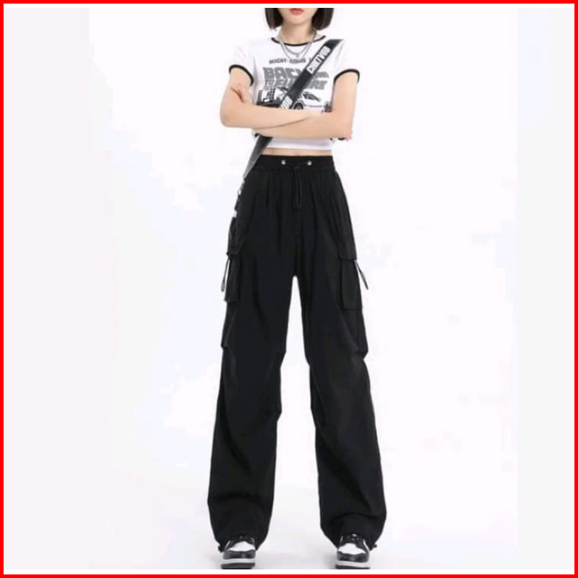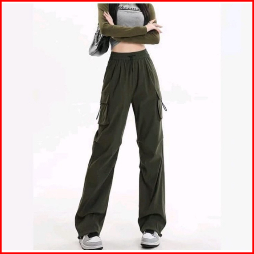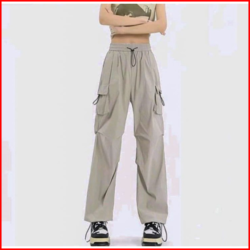 Cargo Pants Wanita Highwaist Loose Korean Style Jumbo - Celana Cargo Wanita Kekinian