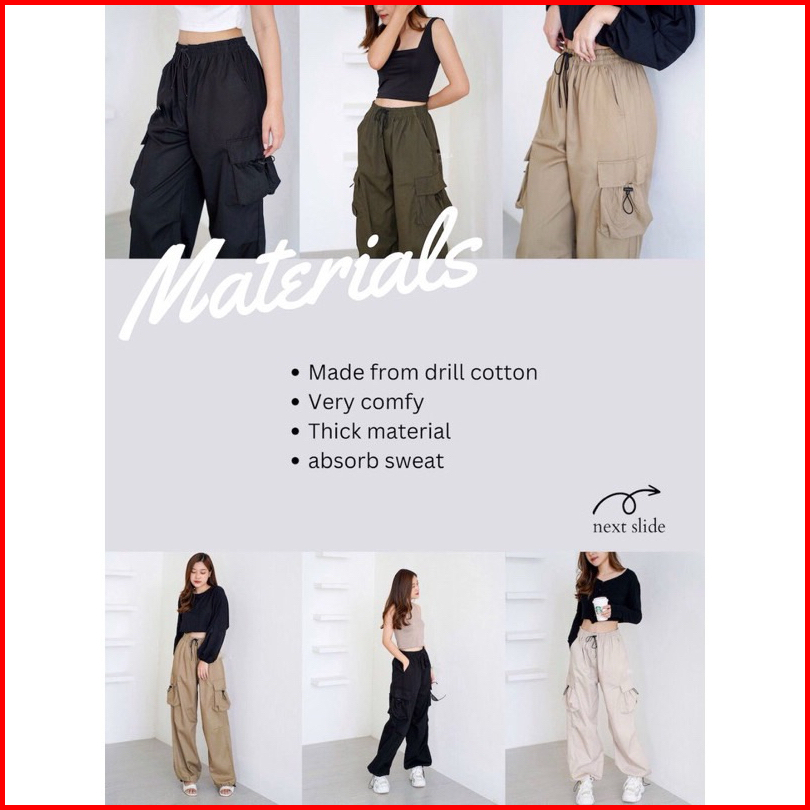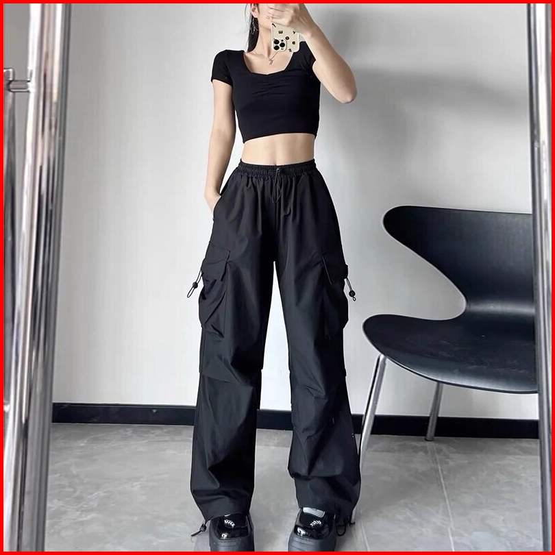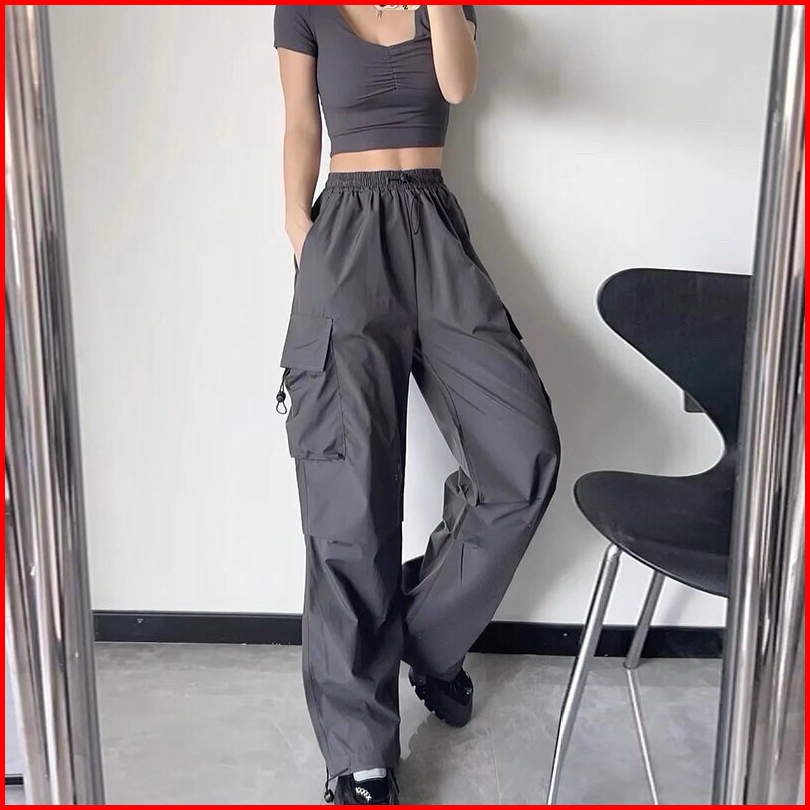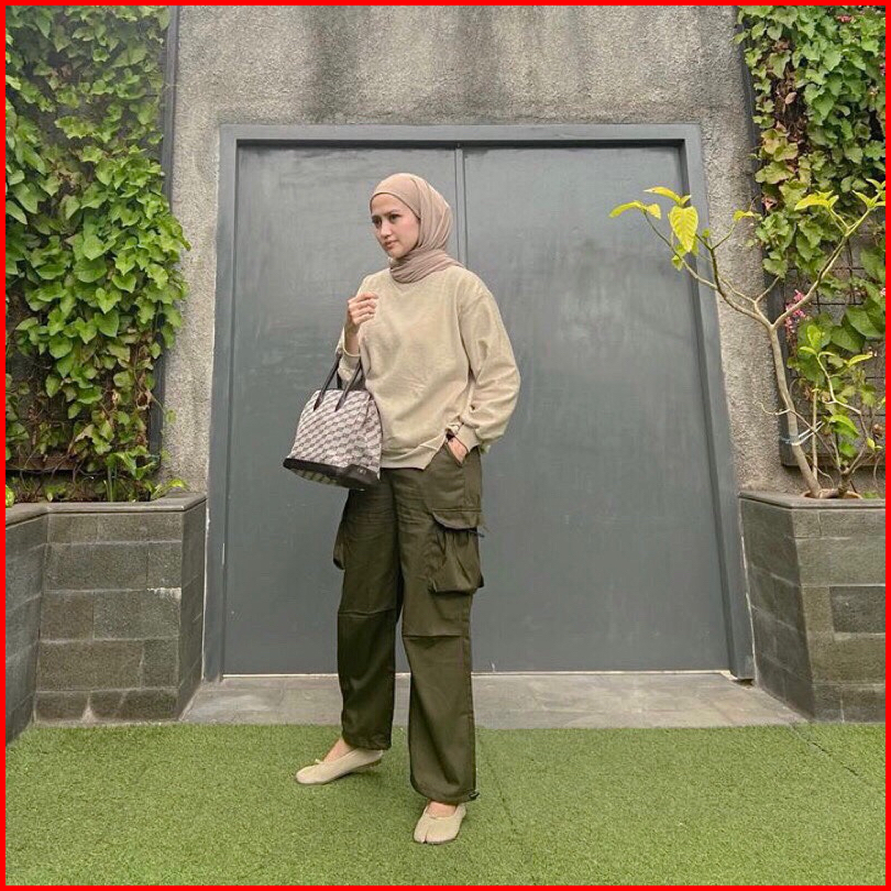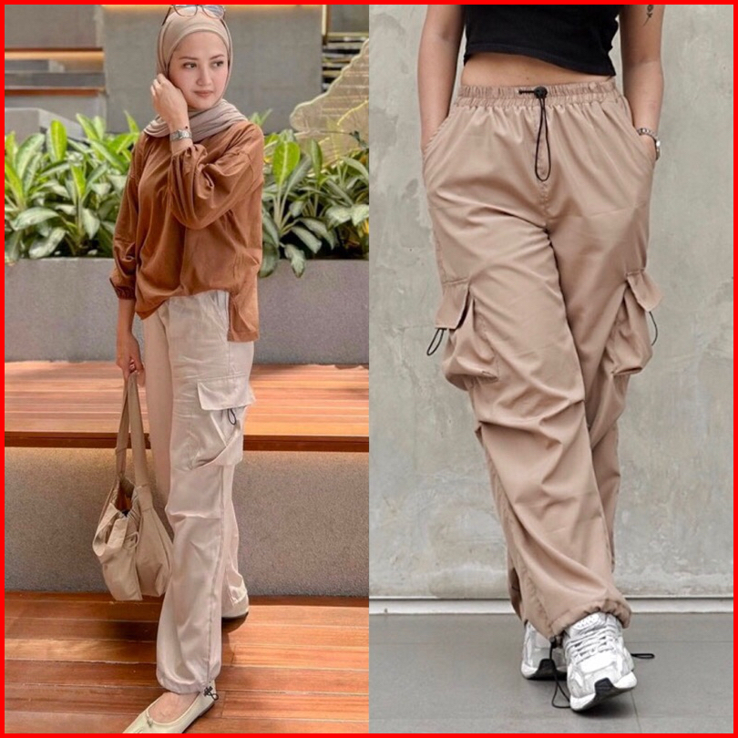Kiya Cargo Pants Wanita Highwaist Loose Korean Style Jumbo - Celana Kargo Tali Serut