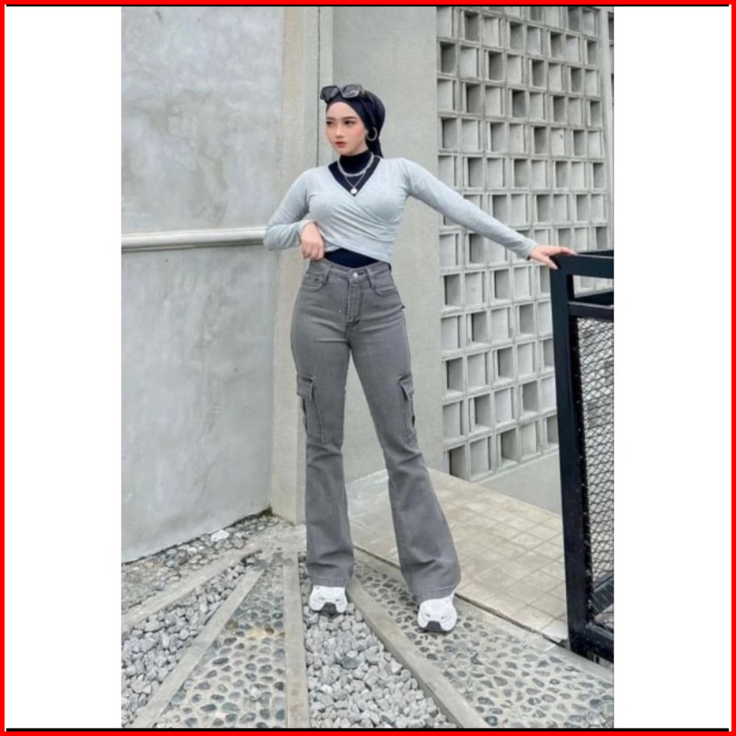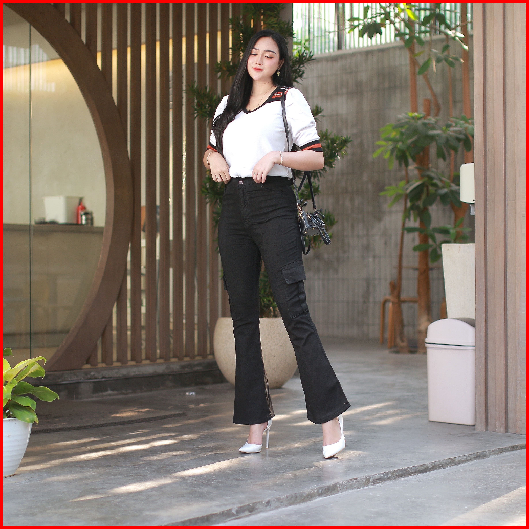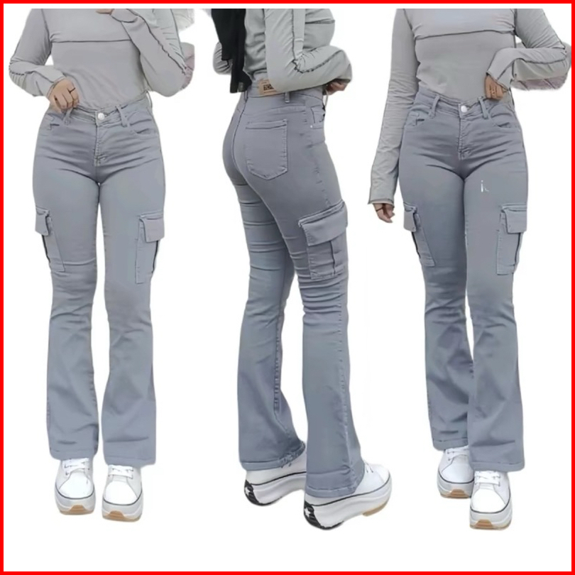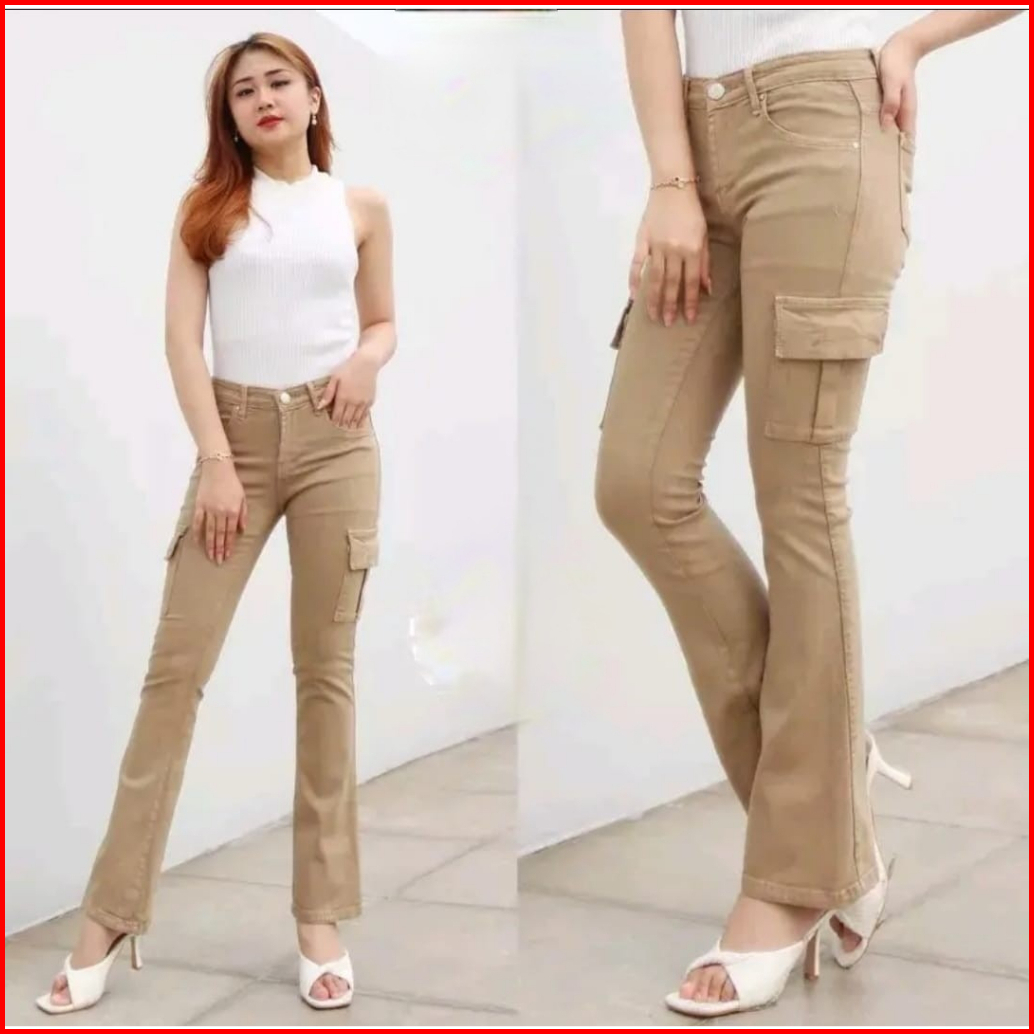 Celana Cargo Cutbray Stretch Highwaist Jeans Big Size Jumbo 27-42
