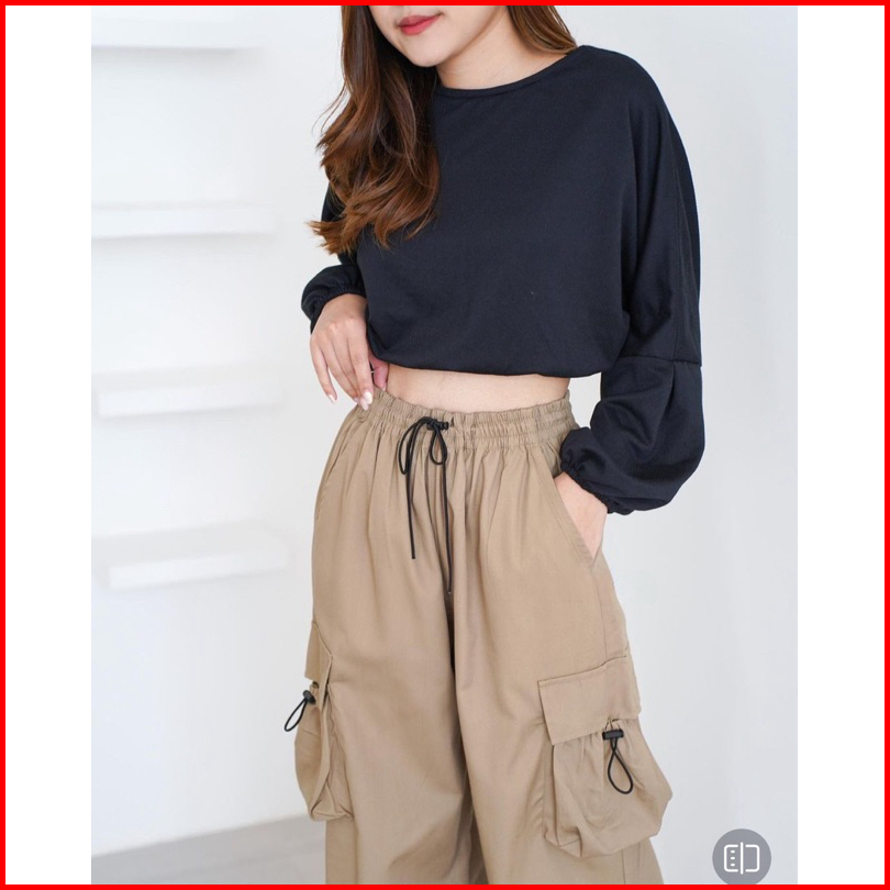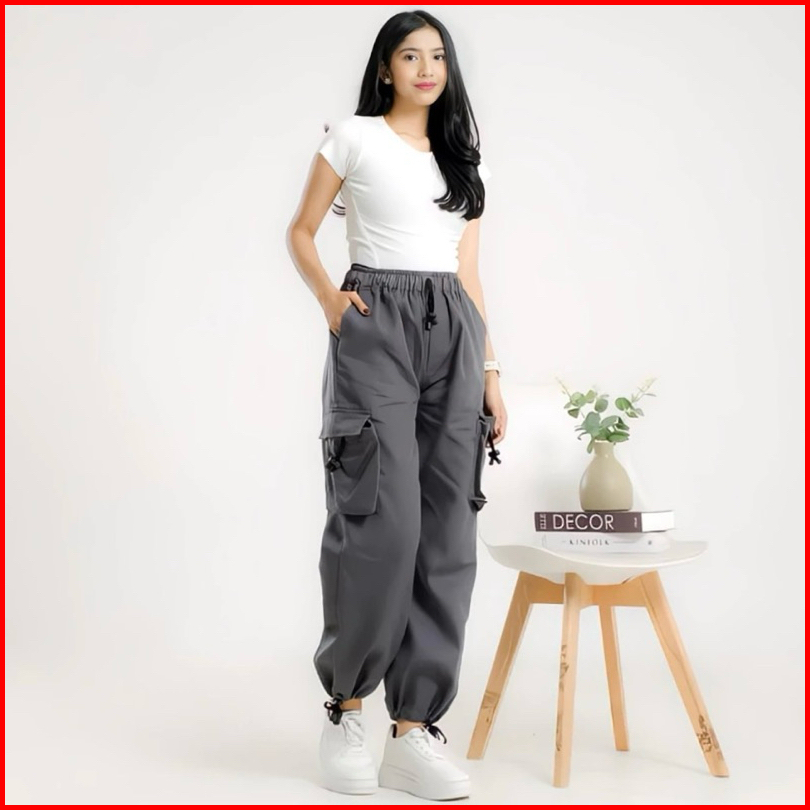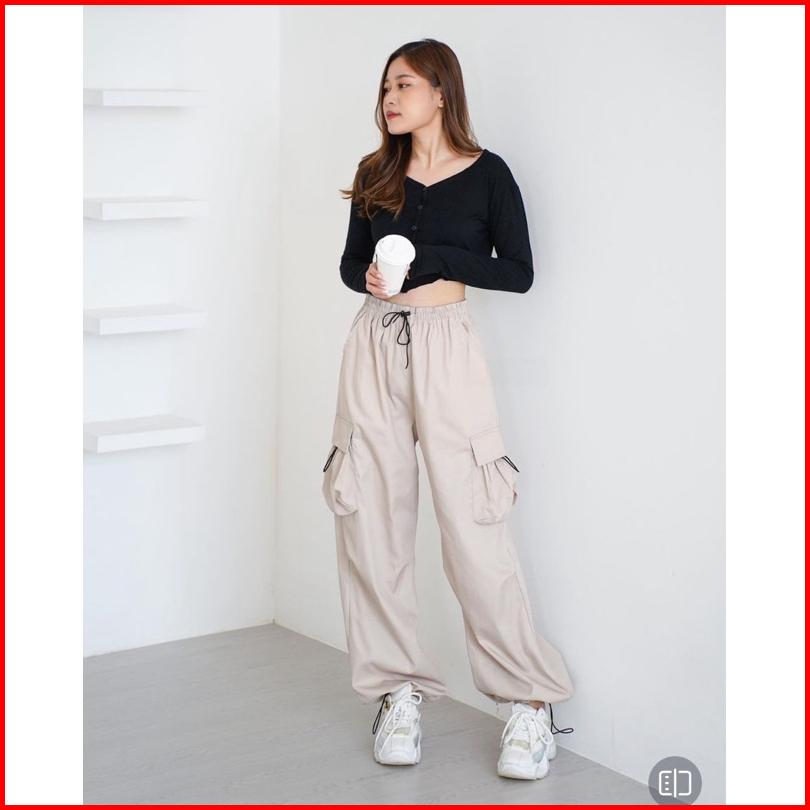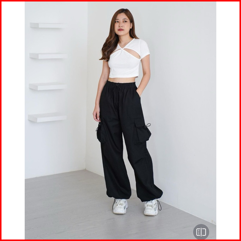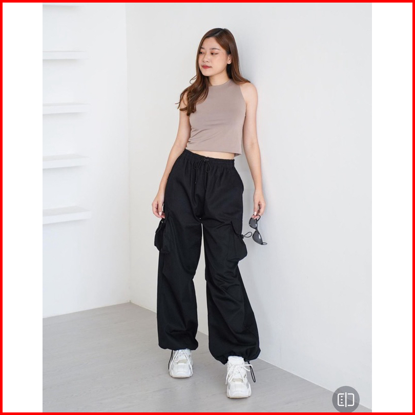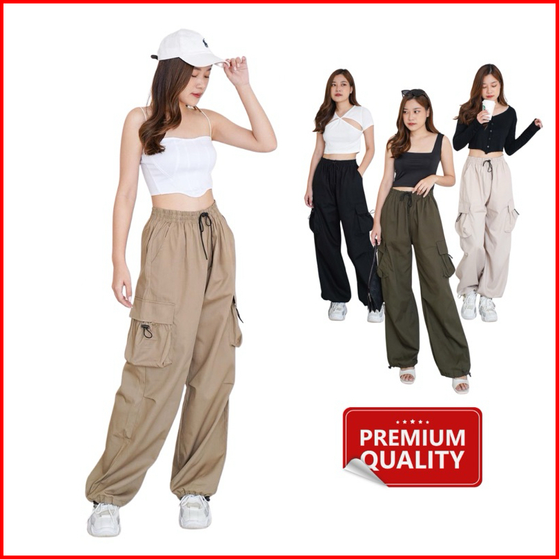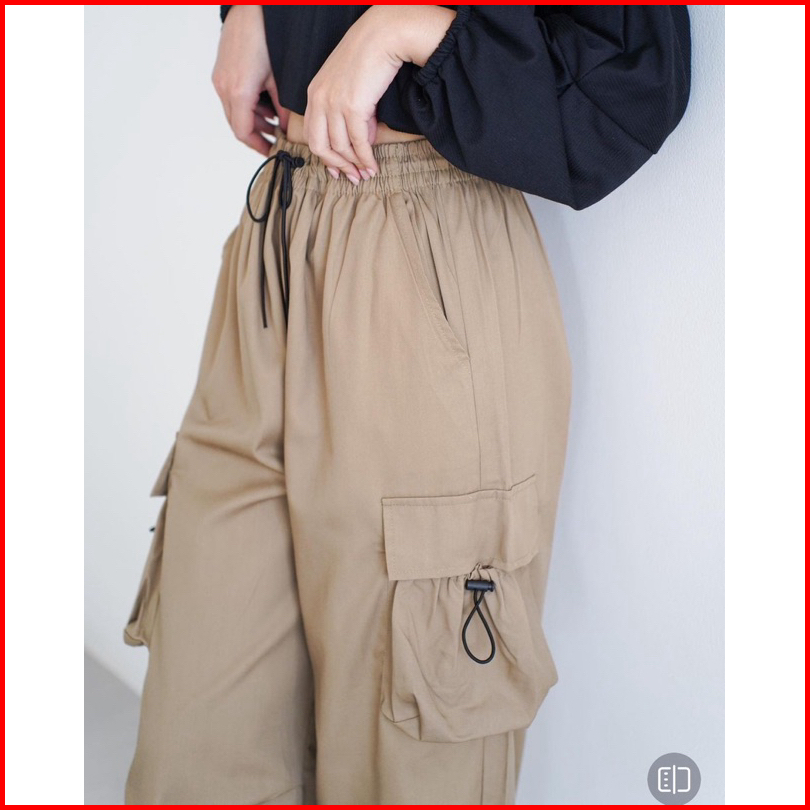 Cargo Pants Wanita Highwaist Loose Pants Korean Style Jumbo-celana Cargo Wanita Serut Baggy Pants