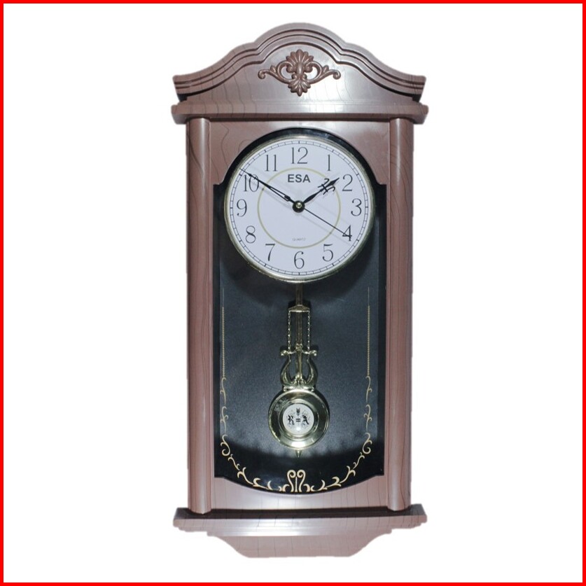 Jam Dinding Bandul Suara Melody Ukuran Besar Motif Kayu Berkualitas Free Baterai Desain Classic