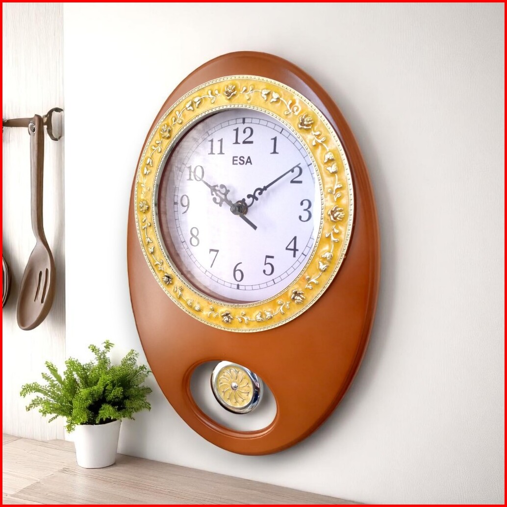 Esa Jam Dinding Melody Bandul Klasik Design Motif Kayu Free Baterai 9329