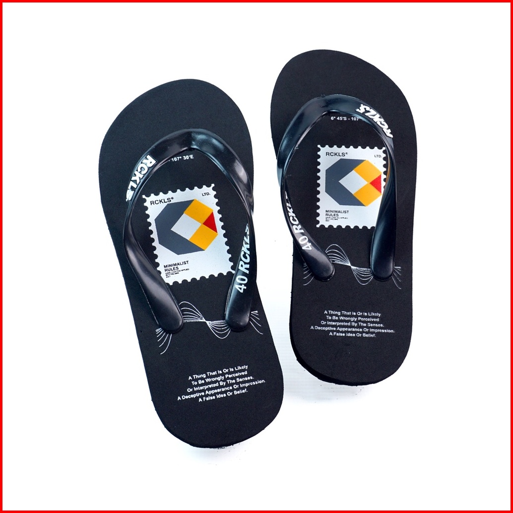 Rckls.- Sandal Spon Distro Sticker Black Sendal Jepit Distro