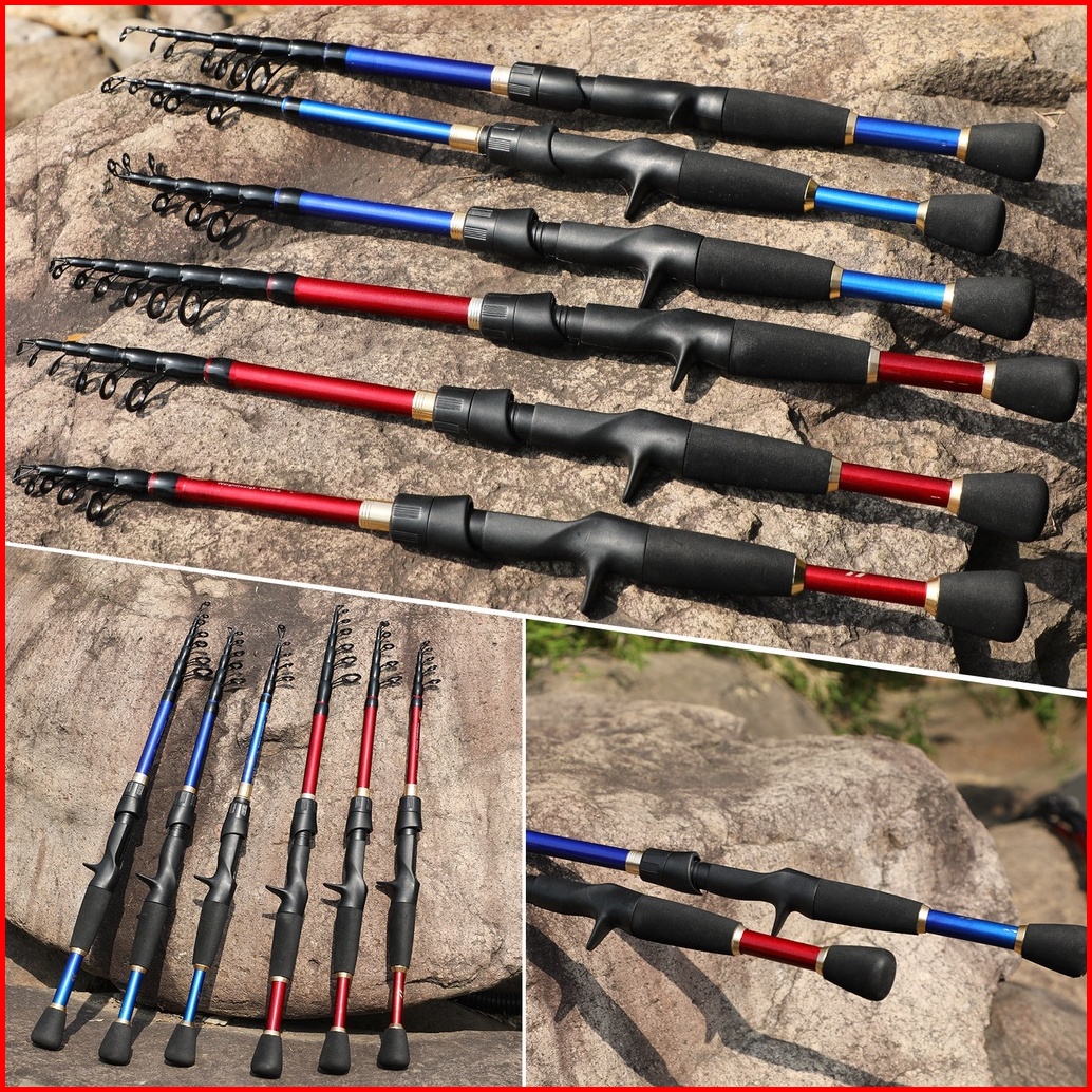 Sougayilang Set Pancing Portabel 1 8 M-2.4m Joran Pancing Tongkat Pancing Teleskopik Trout Serat Karbon Dan Gulungan Mem