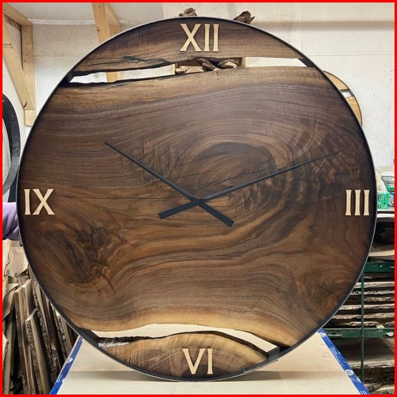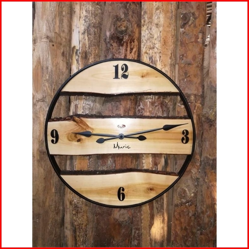 Jam Dinding Kayu Jati Kombinasi Besi Wooden Clock Jam Aesthetic