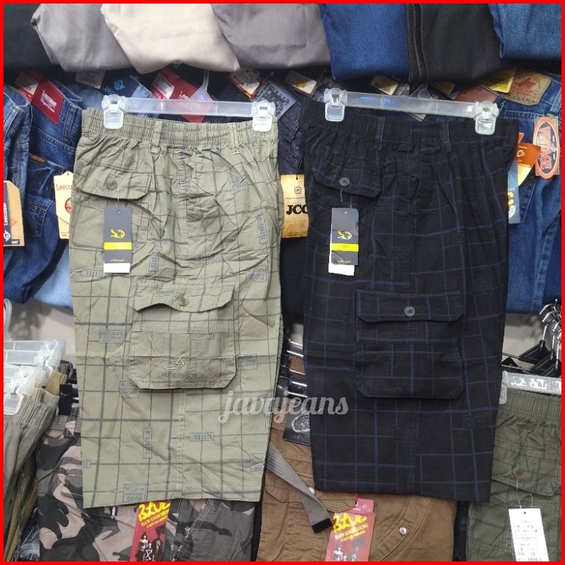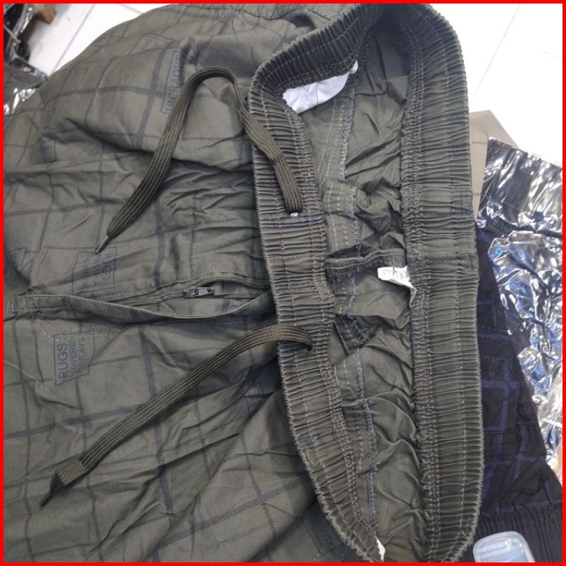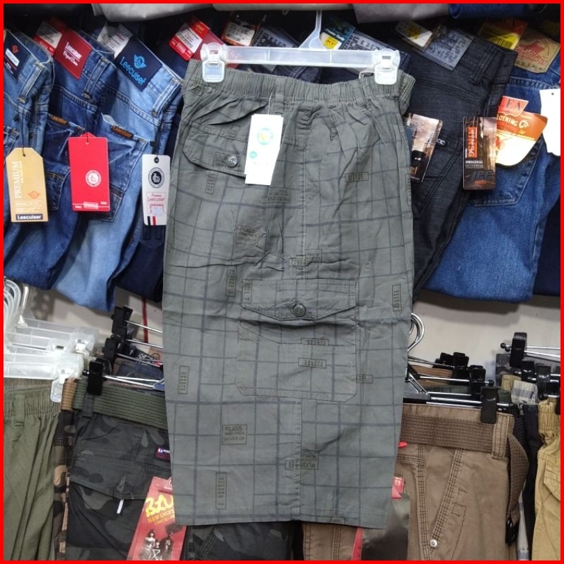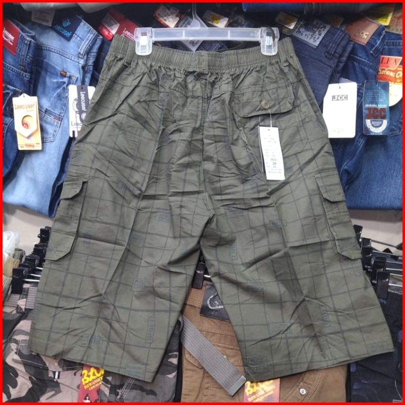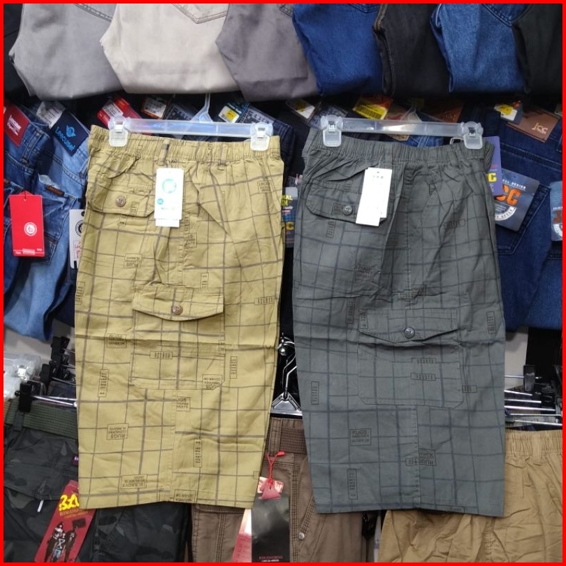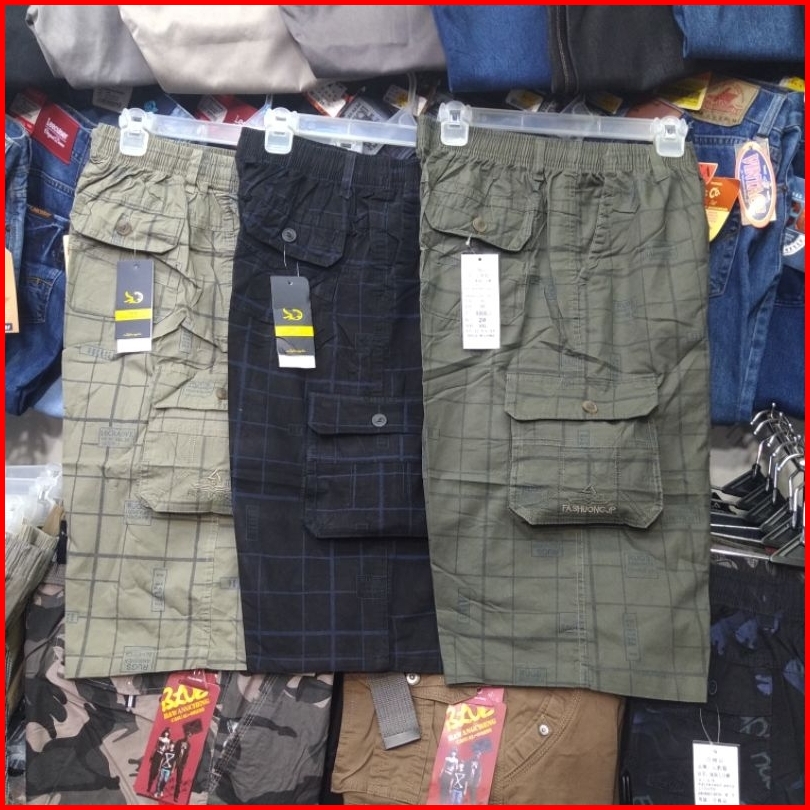 Celana Pendek 7 8 Katun Wash Import Motif Kotak-kotak Pinggang Karet Cargo