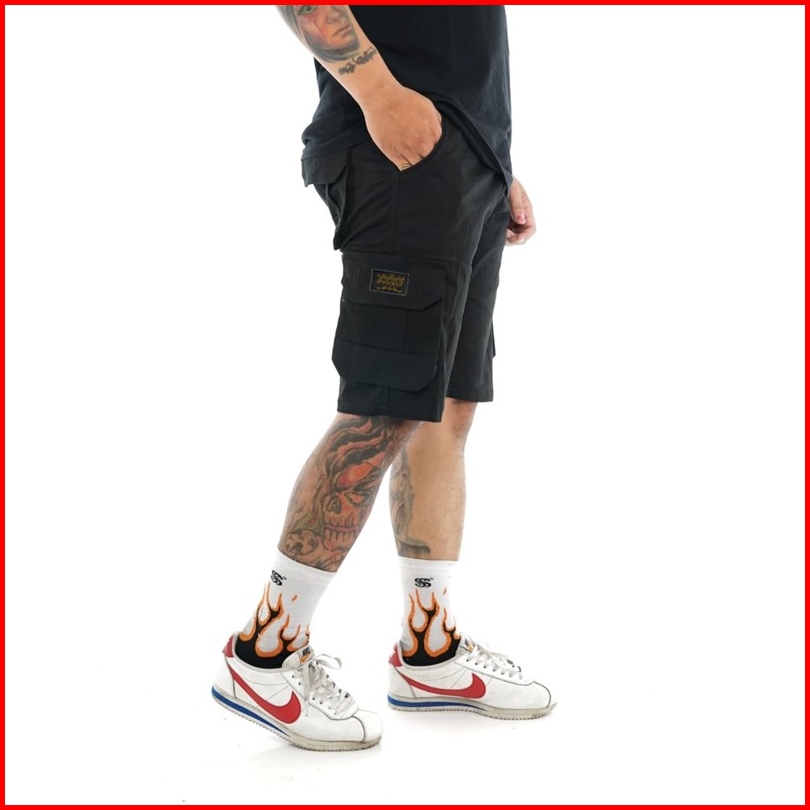 Zweckout Label - Short Cargo Pants Celana Cargo Pendek Pria Jumbo Twil Black