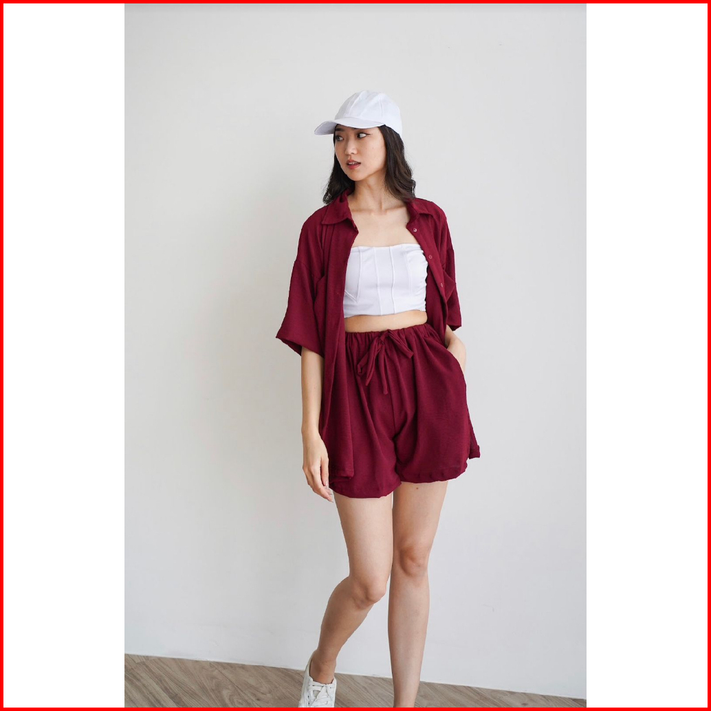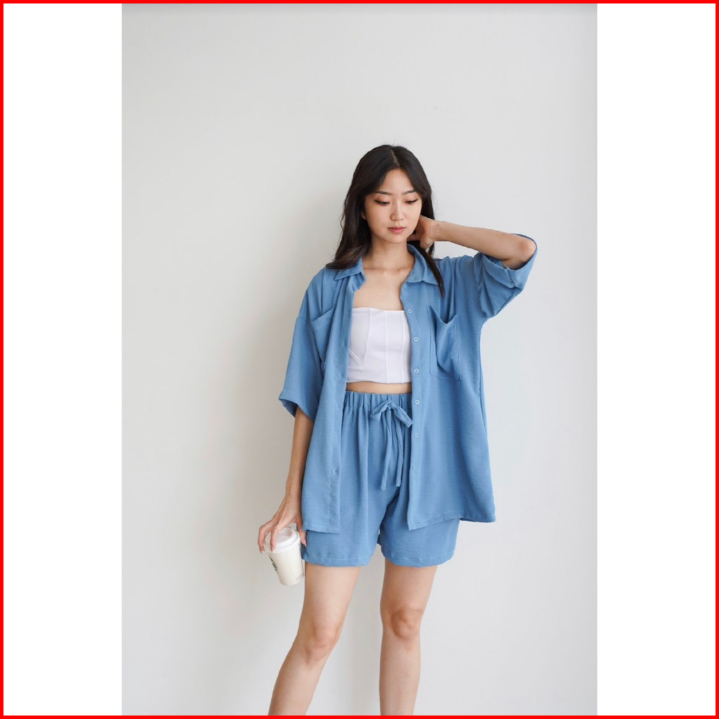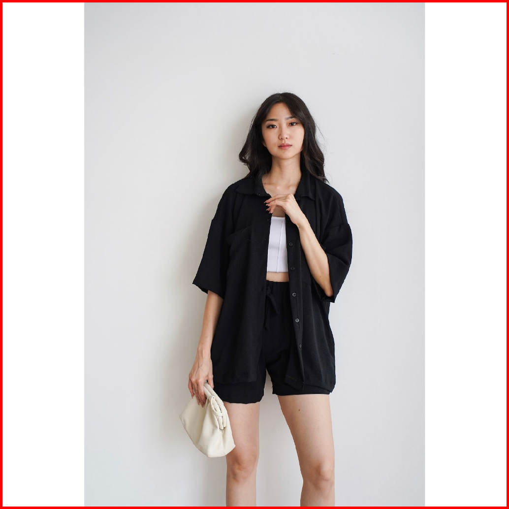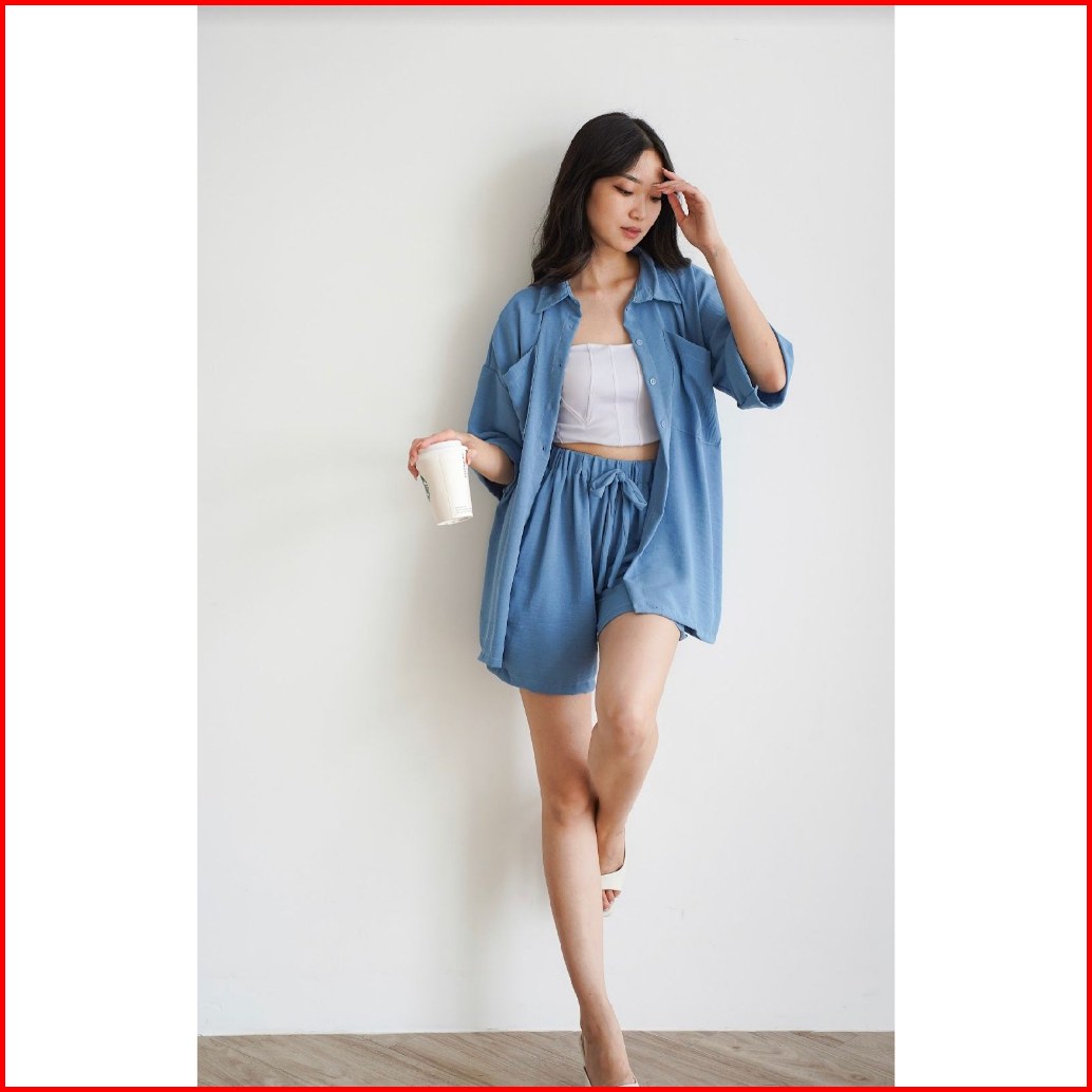 Toply Shop Setelan Kemeja Jiyeon Korean Style Set Kemeja Oversize Celena Pendek Setelan Wanita Krinkle