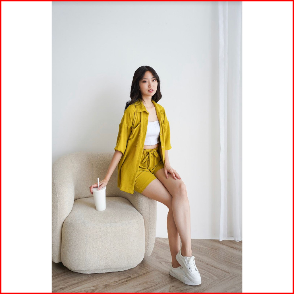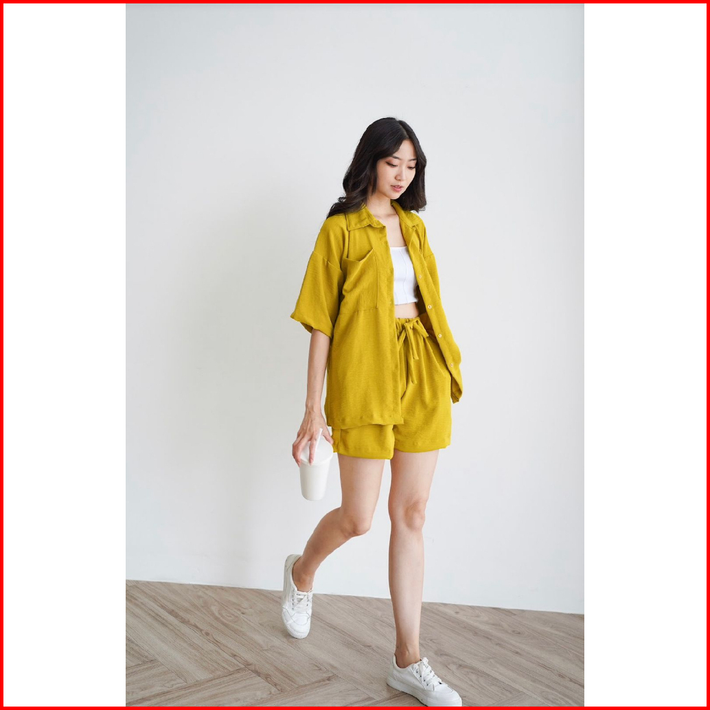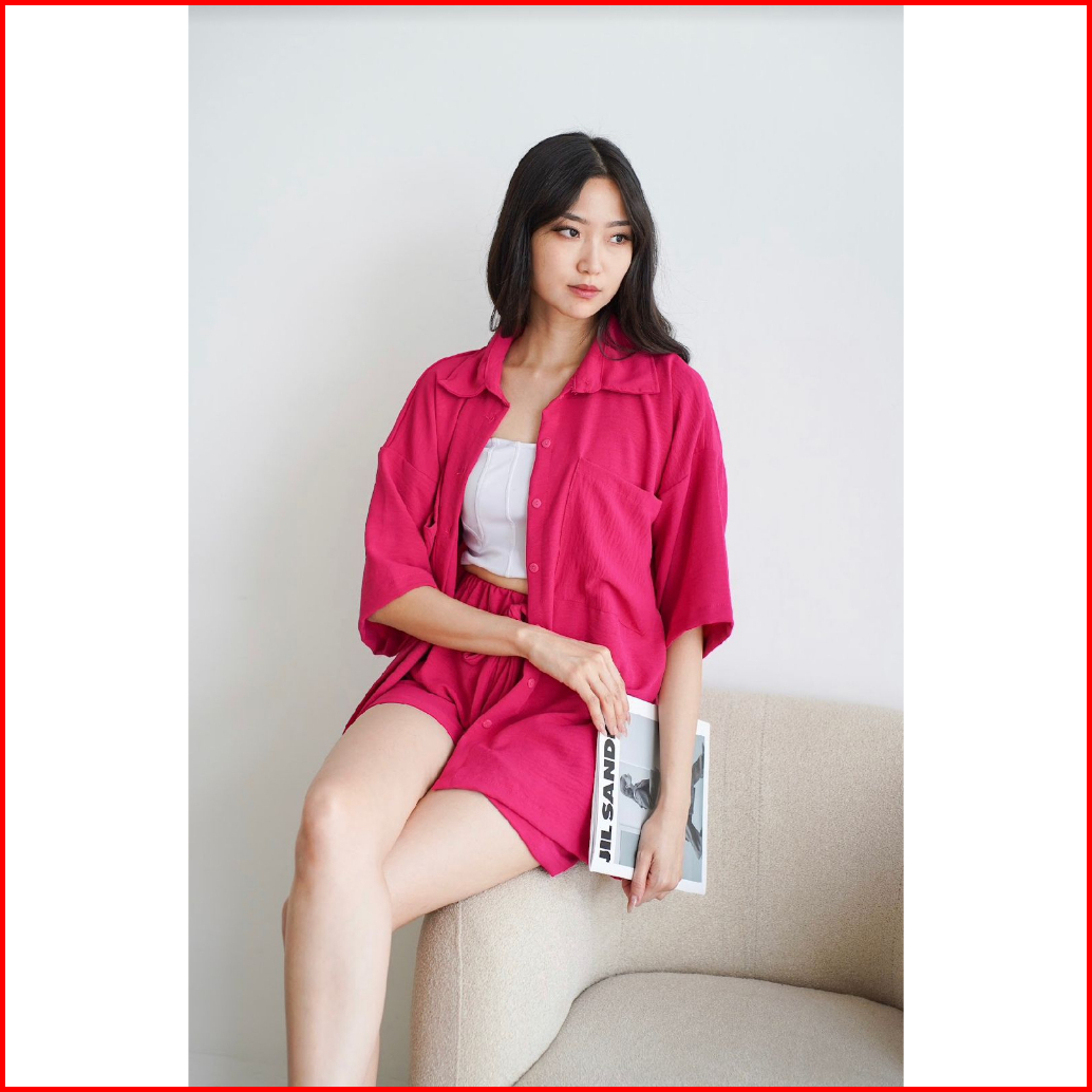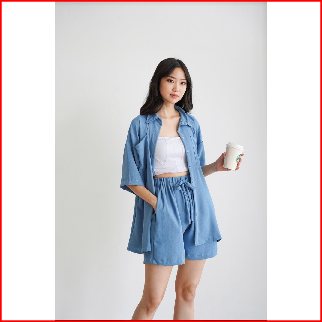 Toply Shop Setelan Kemeja Jiyeon Korean Style Set Kemeja Oversize Celena Pendek Setelan Wanita Krinkle