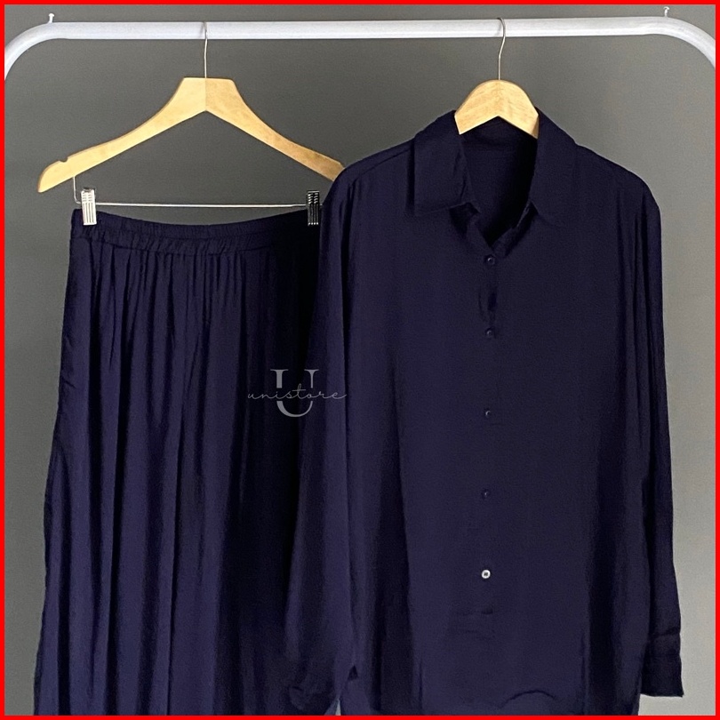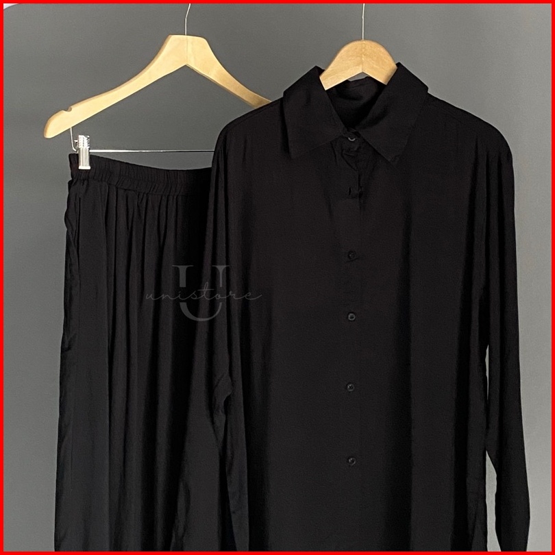 Hari Set - Rayon Shirt Set - Setelan Kemeja Rayon Lengan Panjang - Kemeja Rayon Premium - Setelan Kemeja Kulot - Kemeja