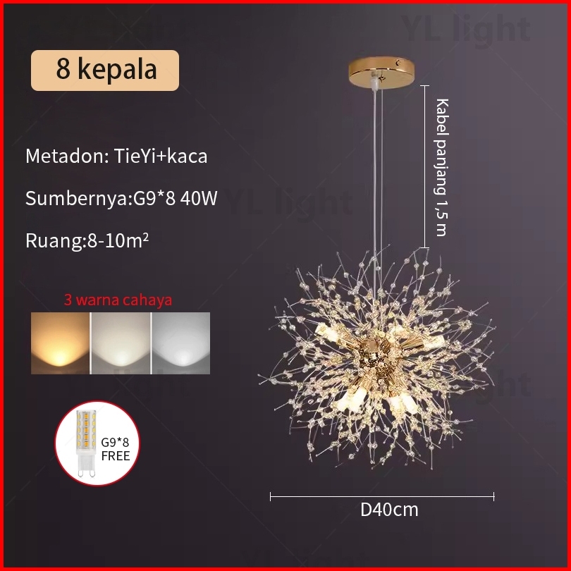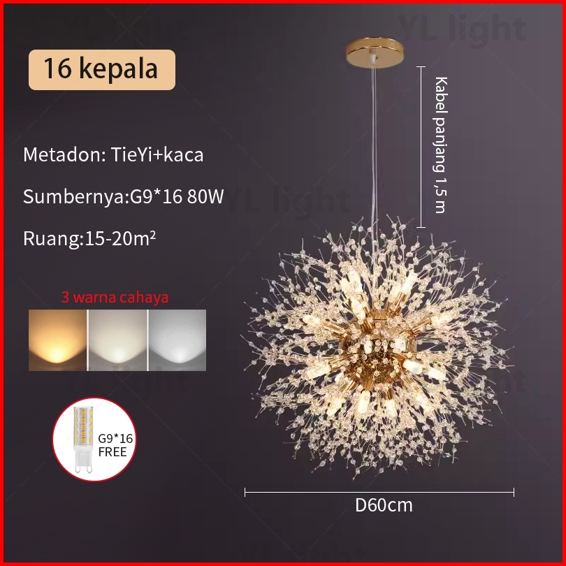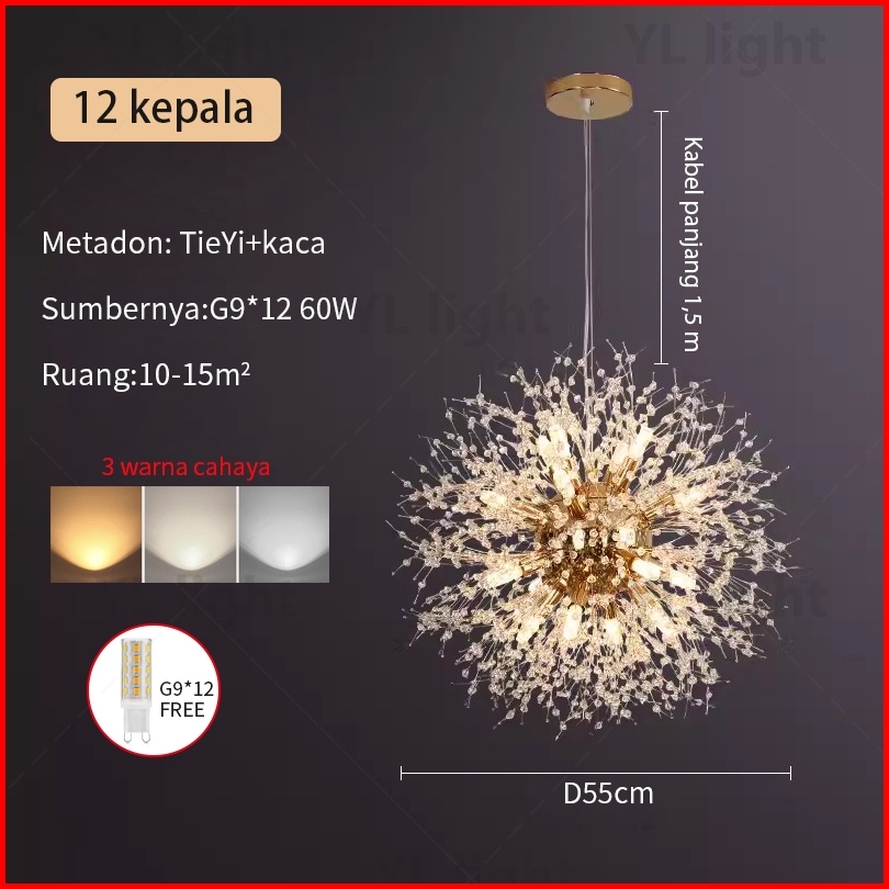 Satu Tahun Jaminan Lampu Selang Dandelion Nordic Led Lampu Ruang Tamu Kristal Kamar Tidur Lampu Langit Tinggi Lampu Ruma