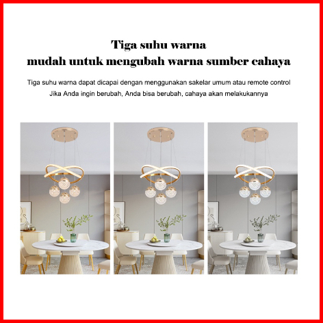 Lampu Hias Lampu Gantung Ruang Tamu 3 Warna Remote Control Meja Makan Lampu Hias Ruang Tamu Lampu Kristal Gantung Mewah
