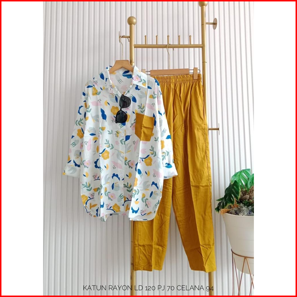 Setelan Kemeja Motif Wanita Setelan Rayon Premium Hq One Set Katun Rayon Premium Setcel Terbaru