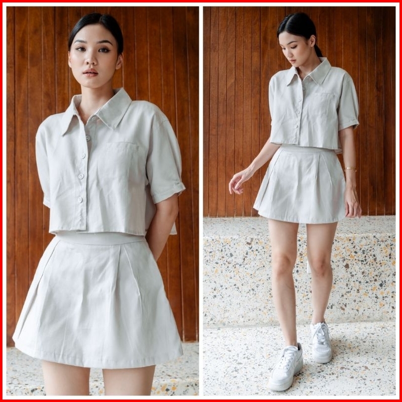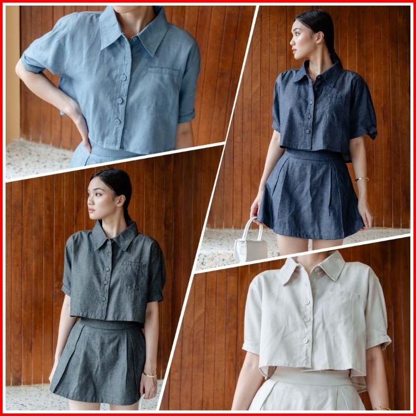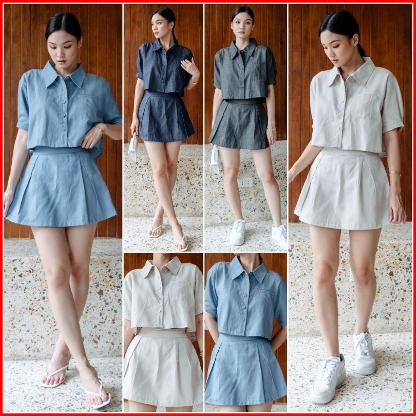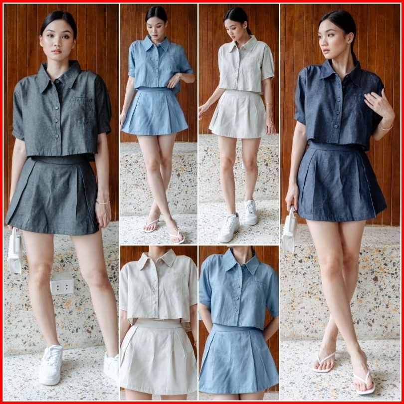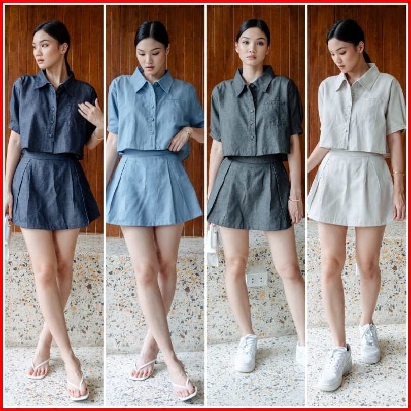 Sale Best Seller Recommended Premium Sennora 2 In 1 Denim Set Collar Button Ctop Shirt With Jeans Skort Setelan Kemeja P