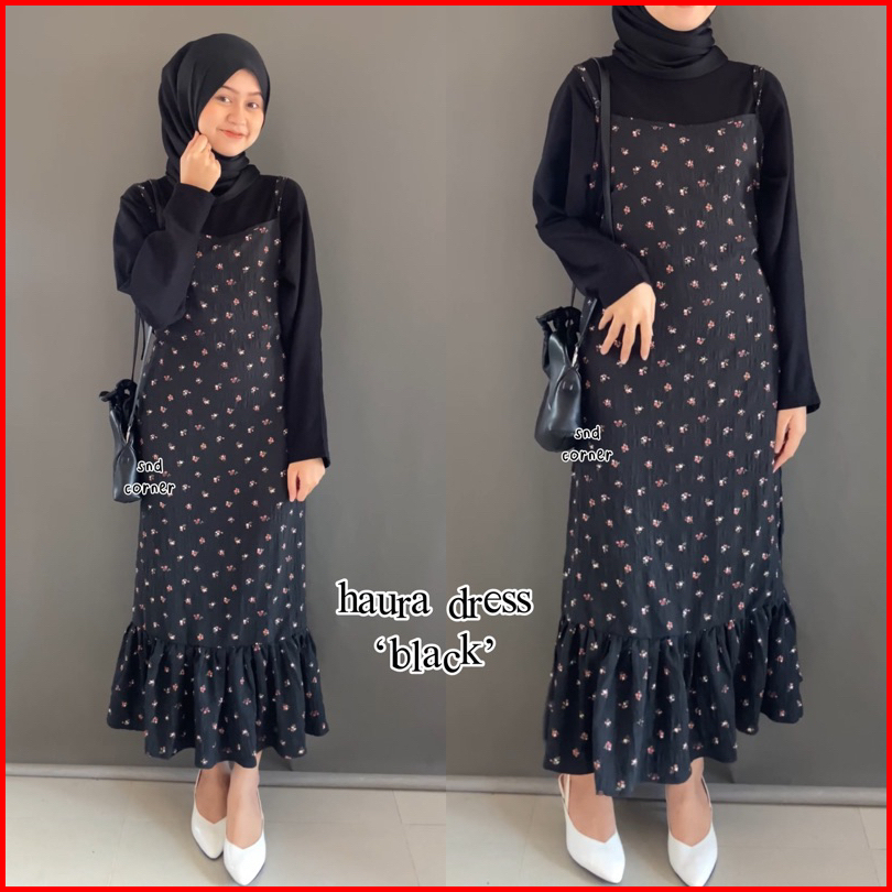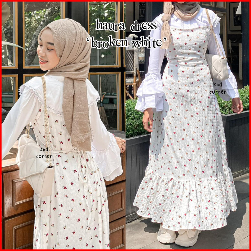 Haura Floral Dress Korean Dres Overall Tanpa Lengan Motif Bunga