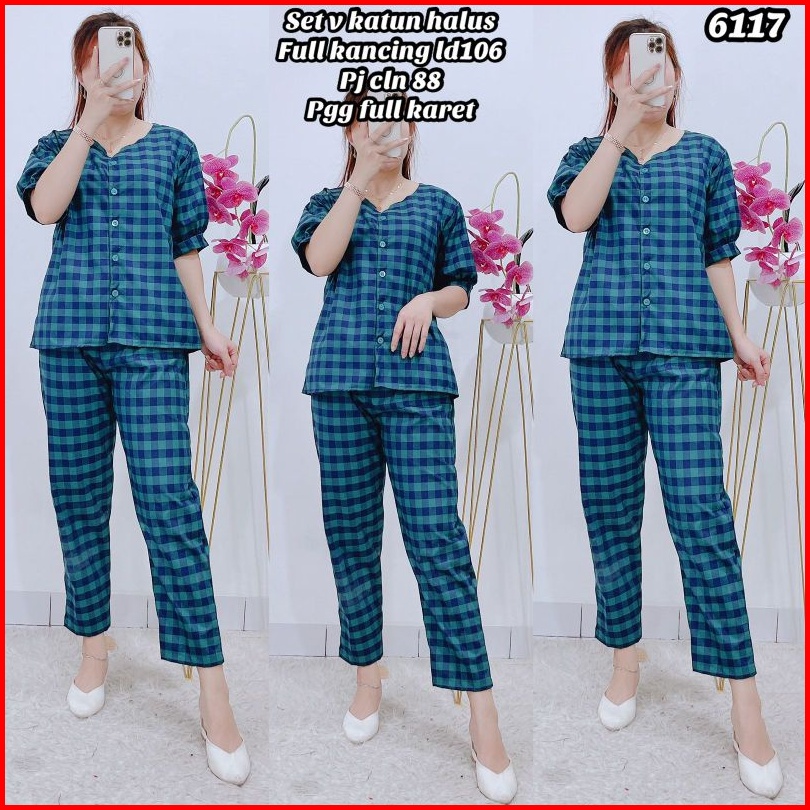 Best Seller Setelan Celana Panjang Kemeja Kotak Katun6117