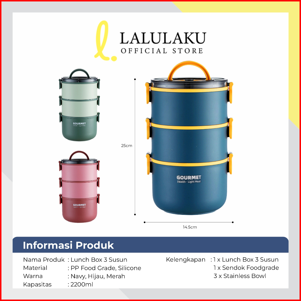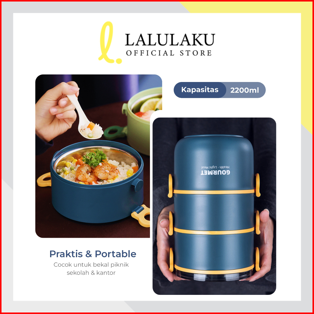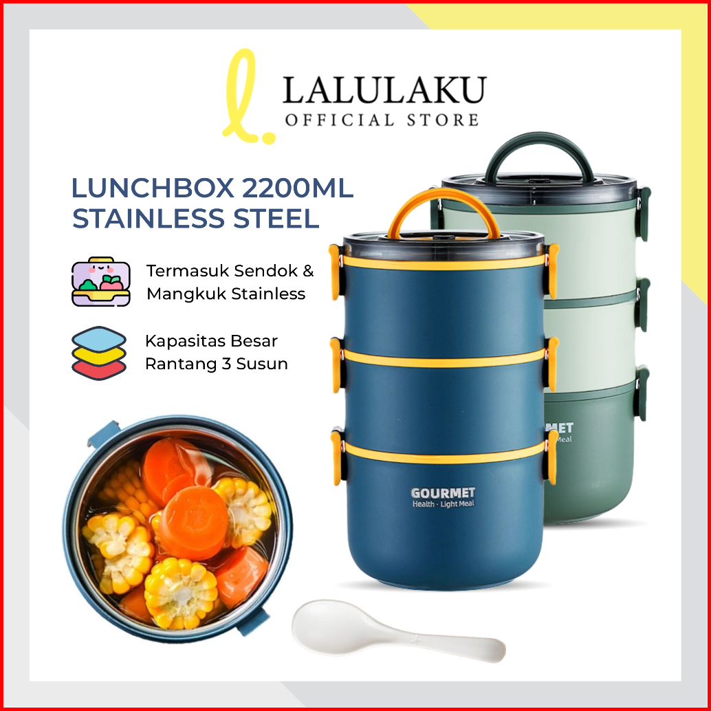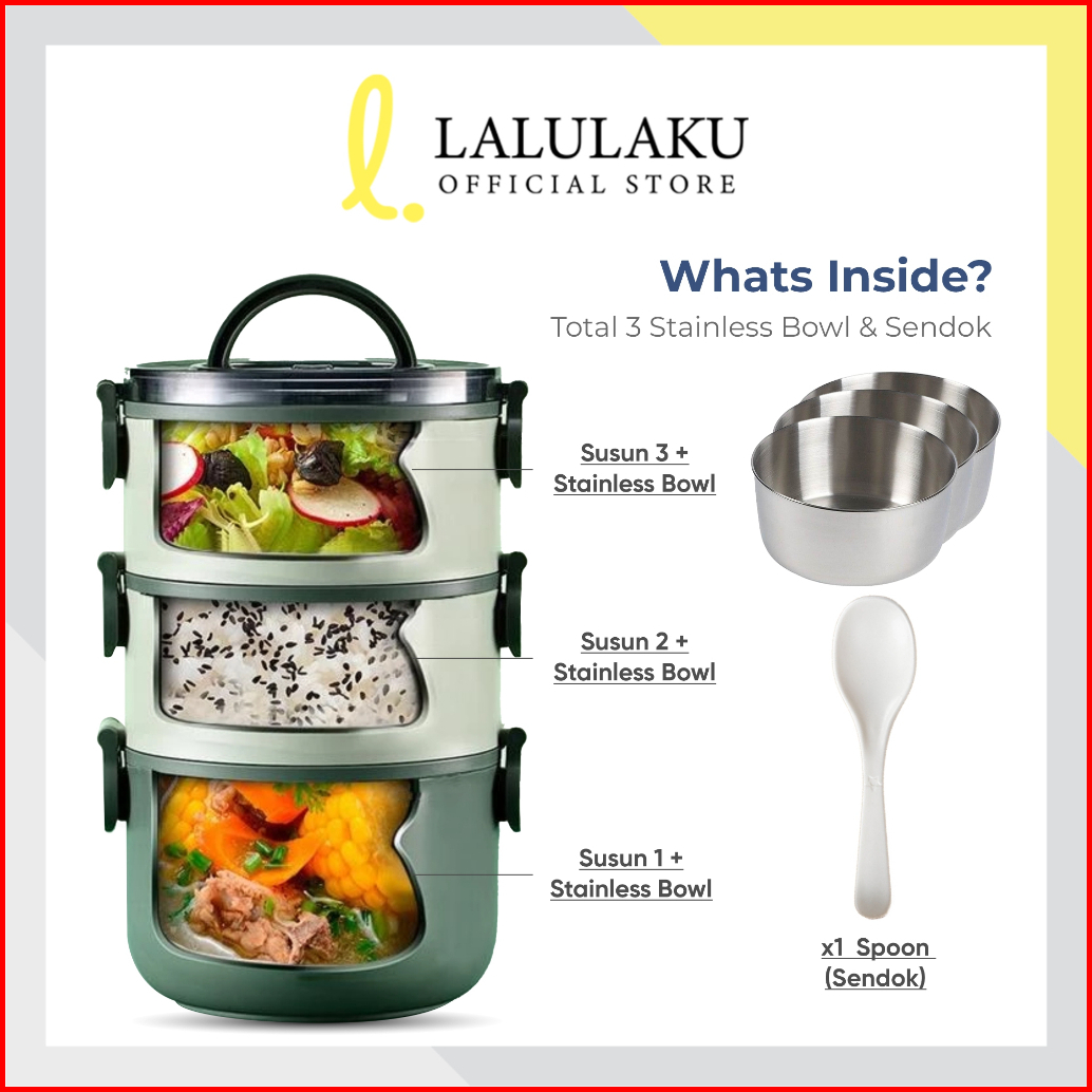 La Natuna Kotak Makan Rantang Susun Stainless Steel Bekal Anti Tumpah Lunch Box Set