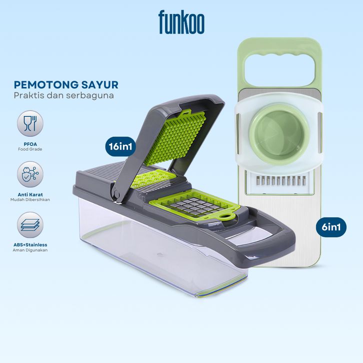 Funkoo Parutan Sayur Set Serbaguna Alat Dapur Parut Iris Buah Bawang Kentang Praktis Anti Karat
