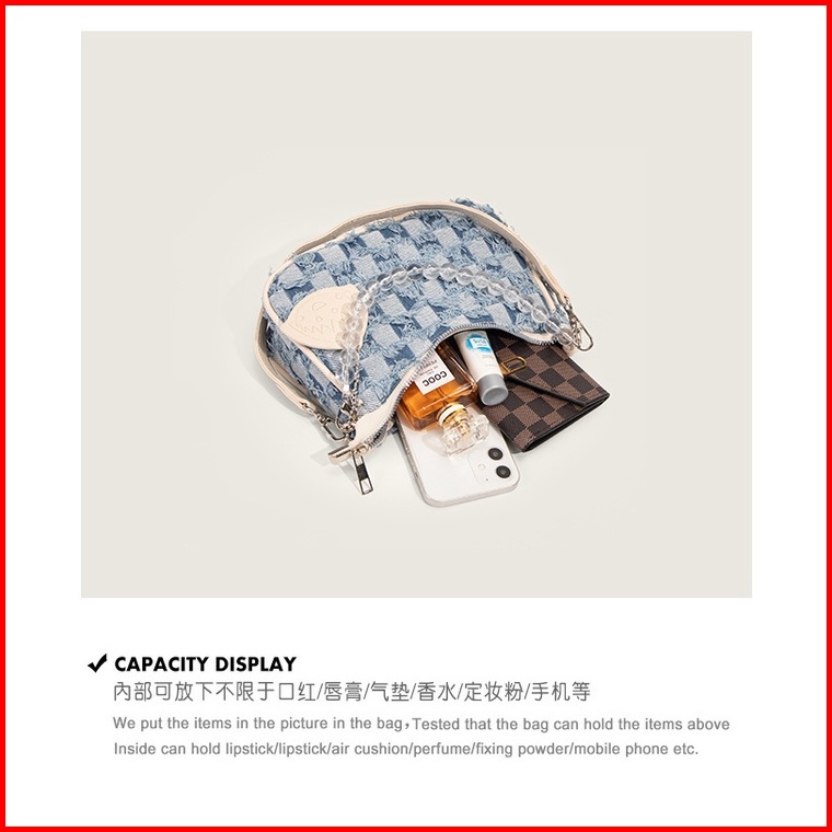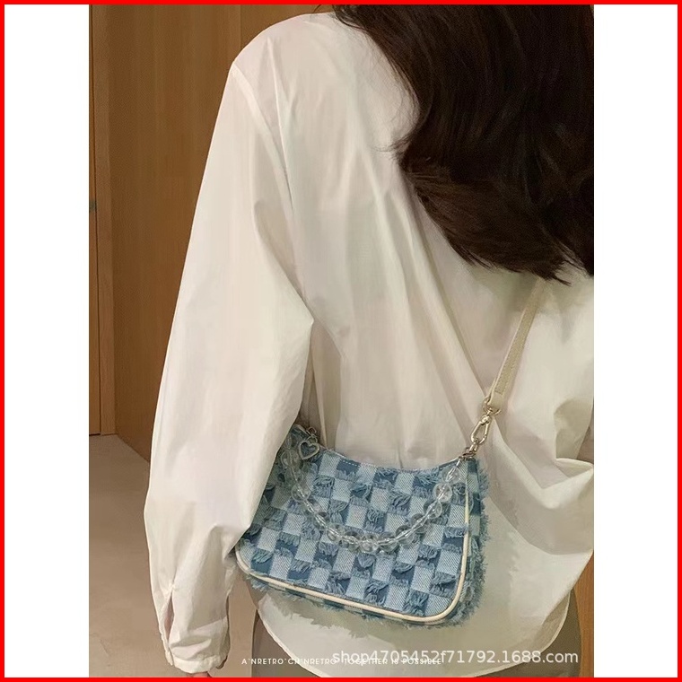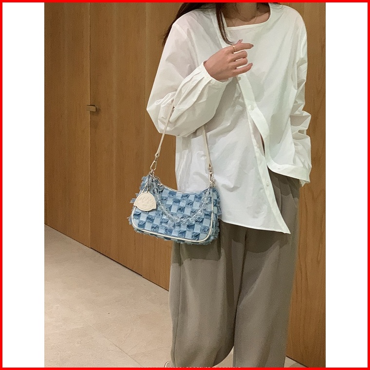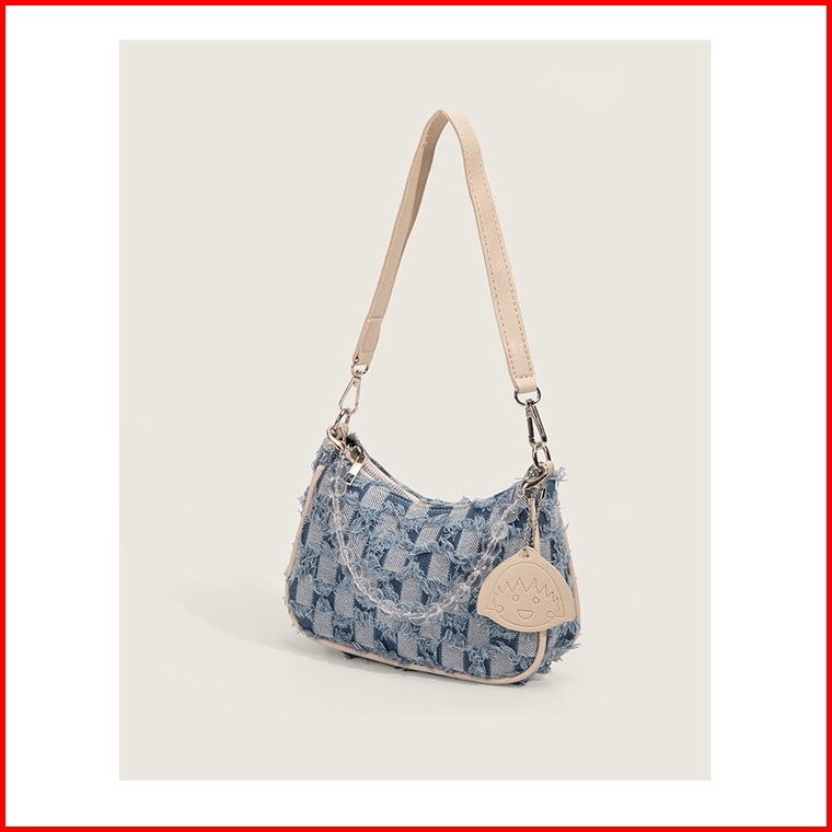 Bao030 Tas Wanita Denim Retro Tas Bahu Jinjing Half Moon Underarm Tas Vintage Tas Elegan Tas Pesta