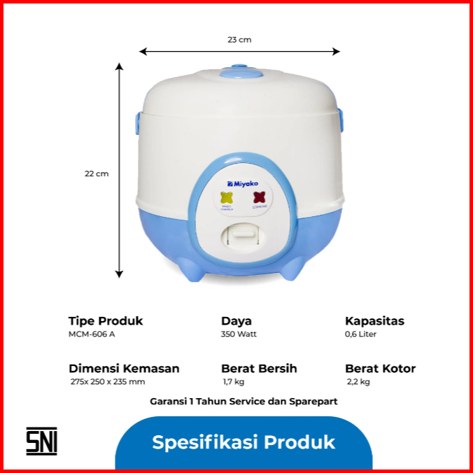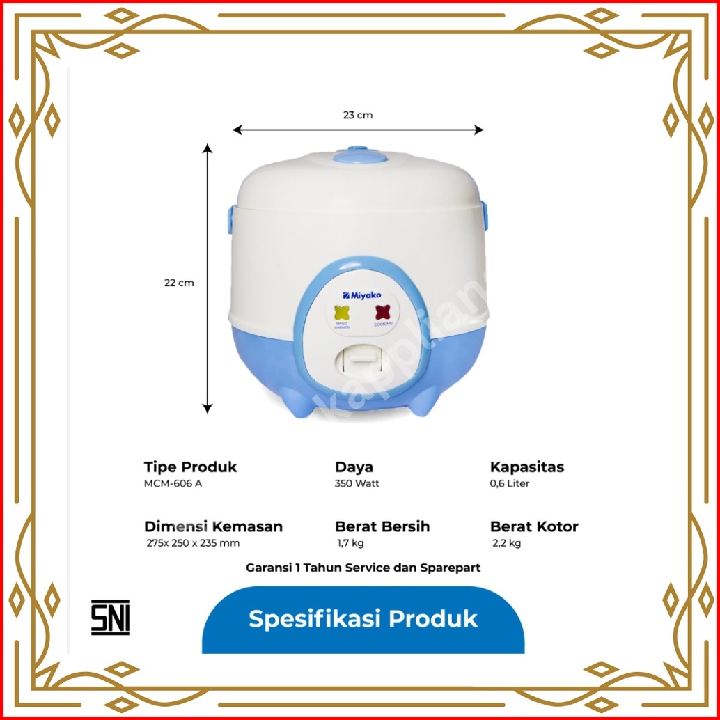 Miyako Rice Cooker Penanak Nasi Magic Com 3 In 1 Mcm-606 A Mcm 606 B Mcm606a 0.6 Liter