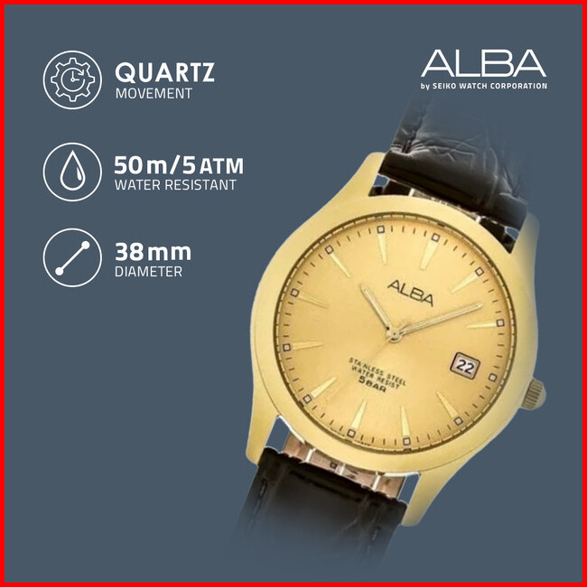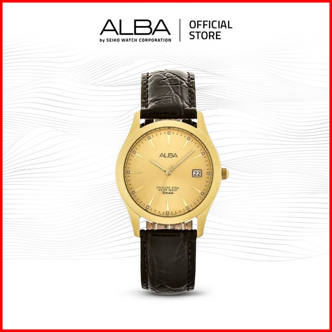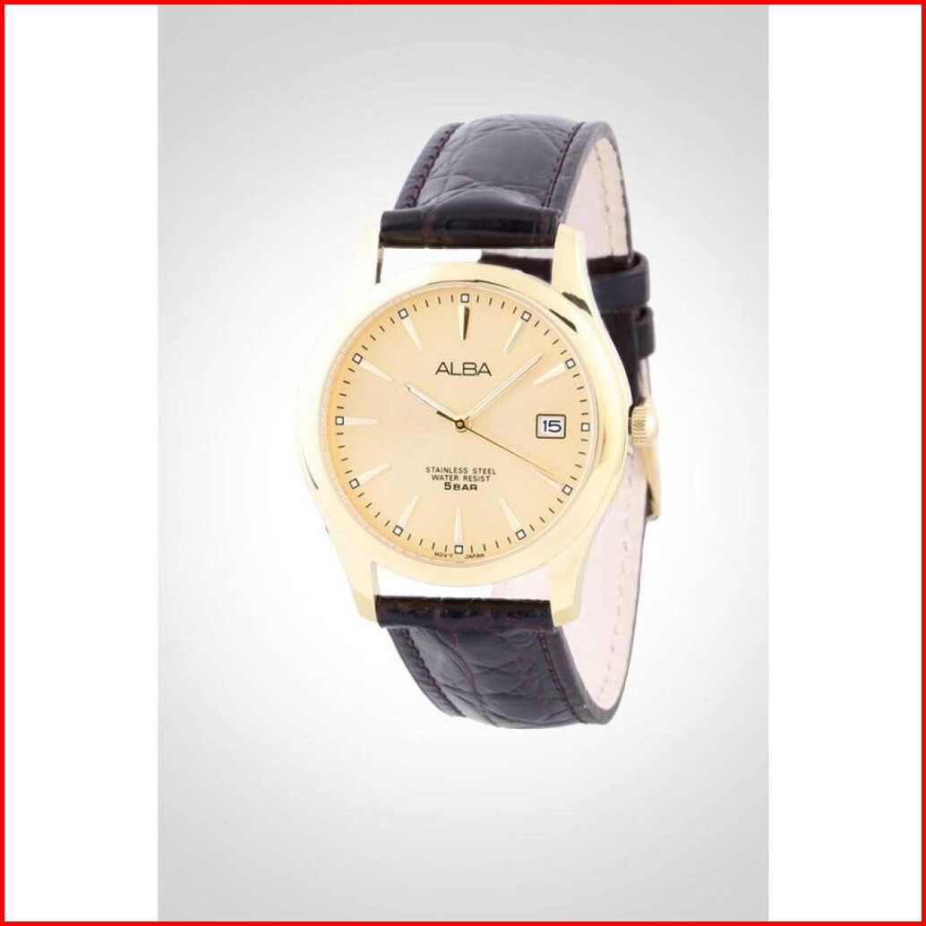 Alba Jam Tangan Pria Axhl64 Axhl64x1 Quartz Dial Black Genuine Leather Strap Watch