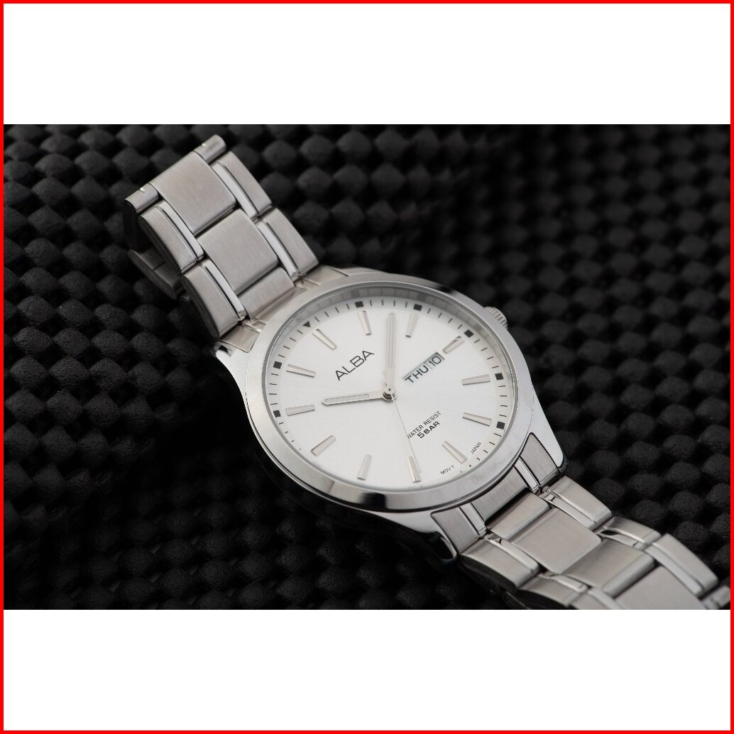 Jam Tangan Pria Alba Prestige Aj6157x1 Silver White Dial Stainless Steel Strap