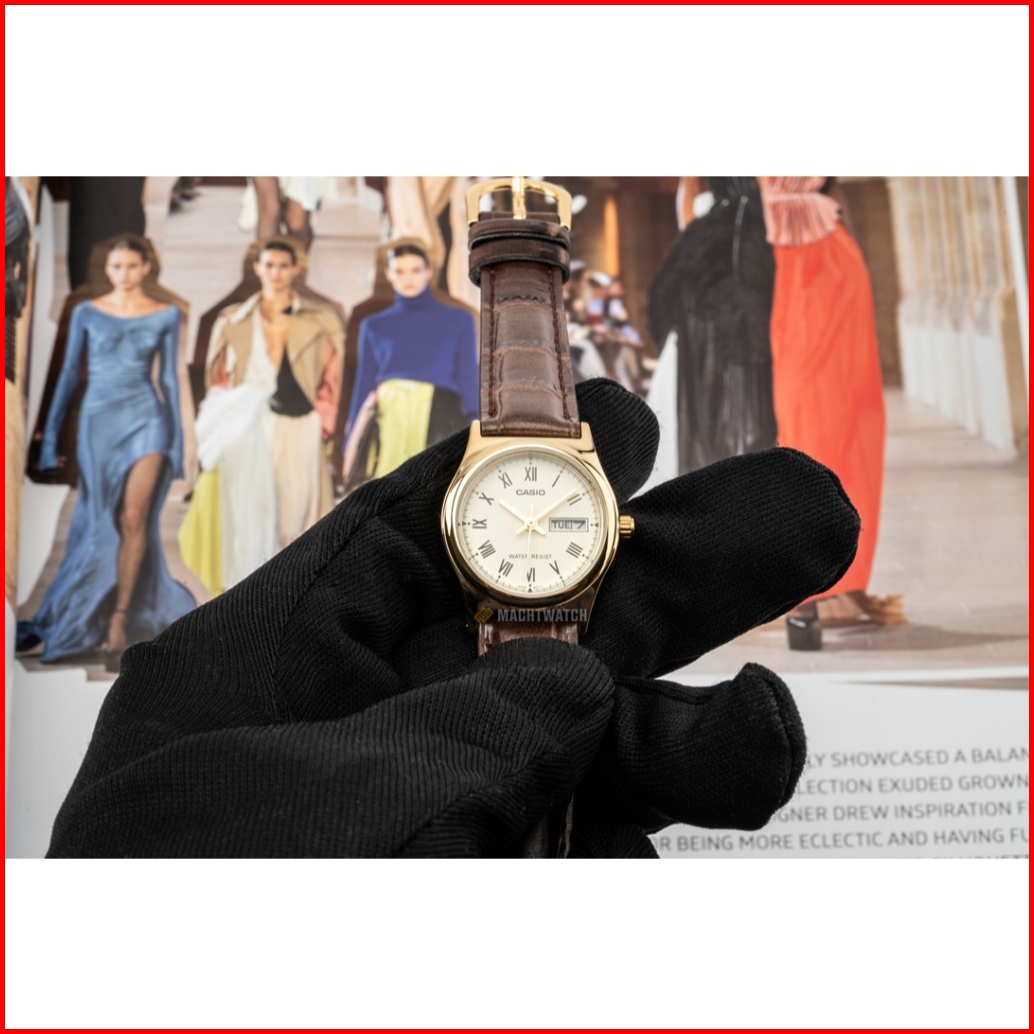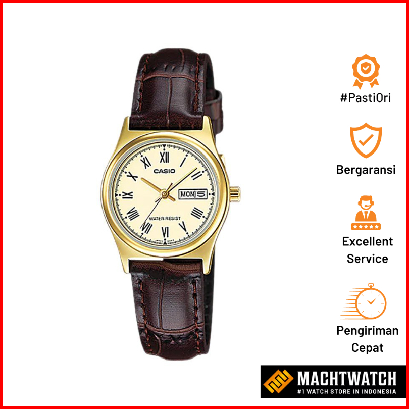 Jam Tangan Wanita Analog Casio Standard Ltp-v006gl-9budf Ltpv006 Ltp-v006g Analog Beige Dial Brown Leather Band