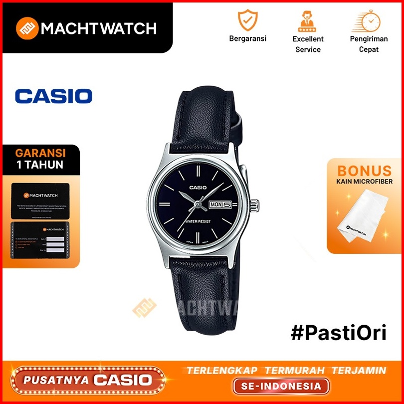 Payday Jam Tangan Wanita Analog Casio Standard Ltp-v006l-1b2udf Ltpv006 Ltp-v006l Black Dial Black Leather Band
