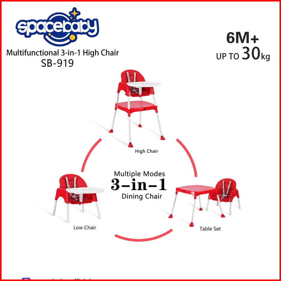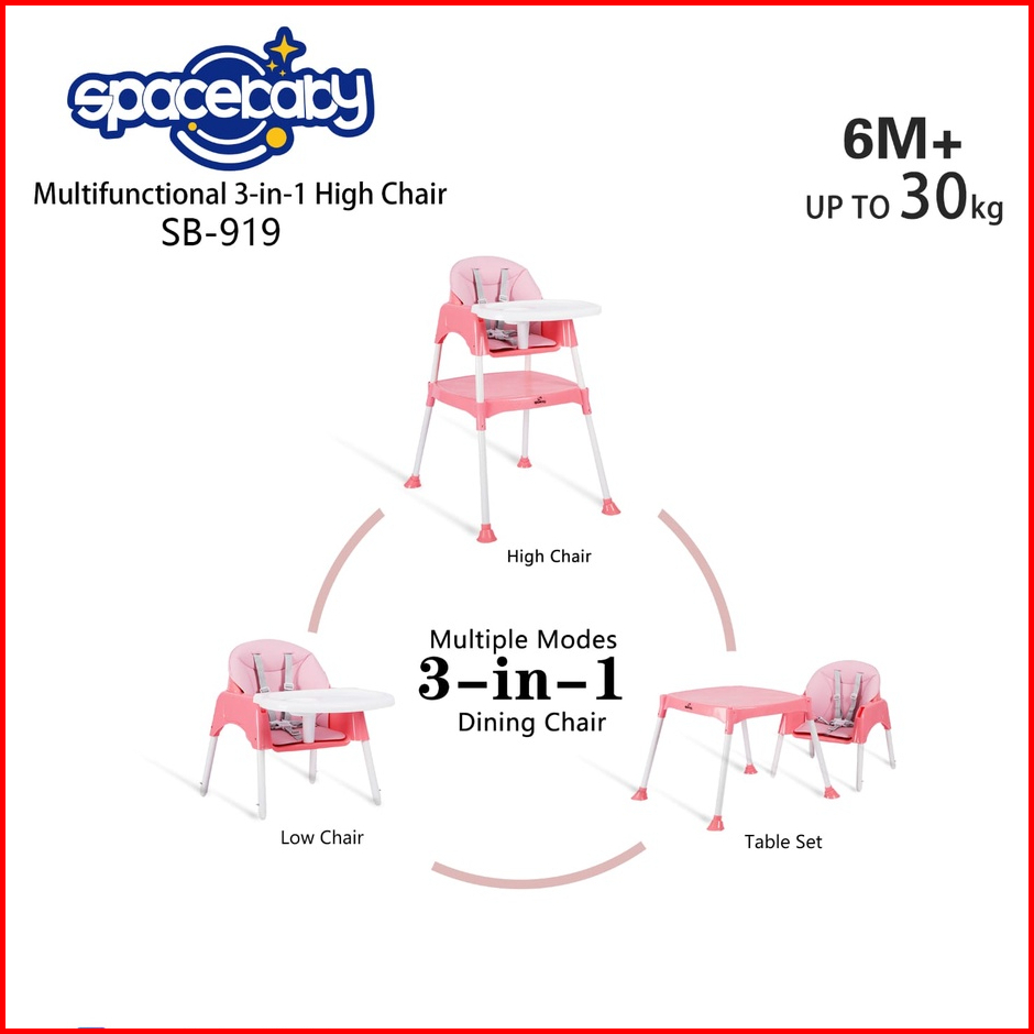 Termurah Baby Chair Spacebaby 919 3 In 1 Kursi Makan Bayi Balita Tempat Makan Anak Bayi Balita Space Baby High Chair 3in