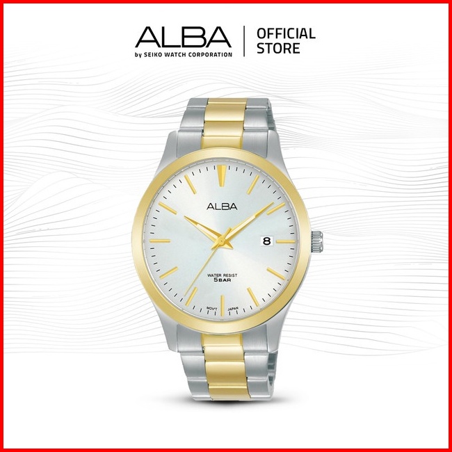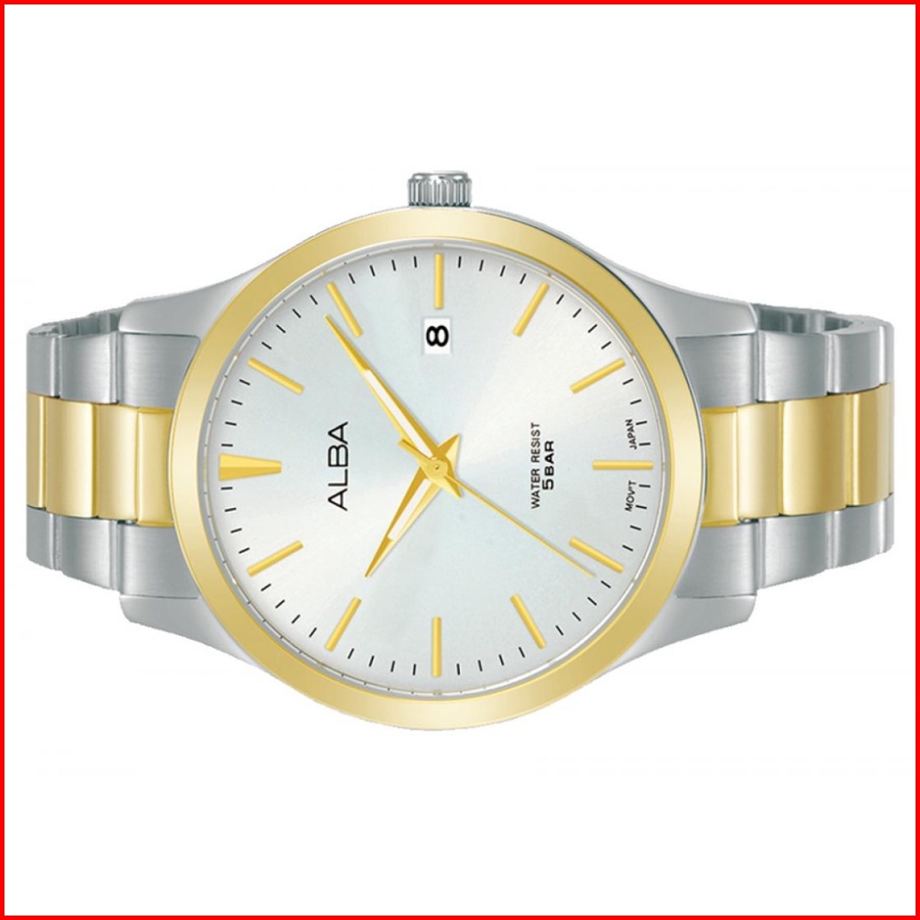 Alba Jam Tangan Pria As9m32 As9m32x1 Quartz Silver White Dial Two Tone Silver- Stainless Steel Strap Watch
