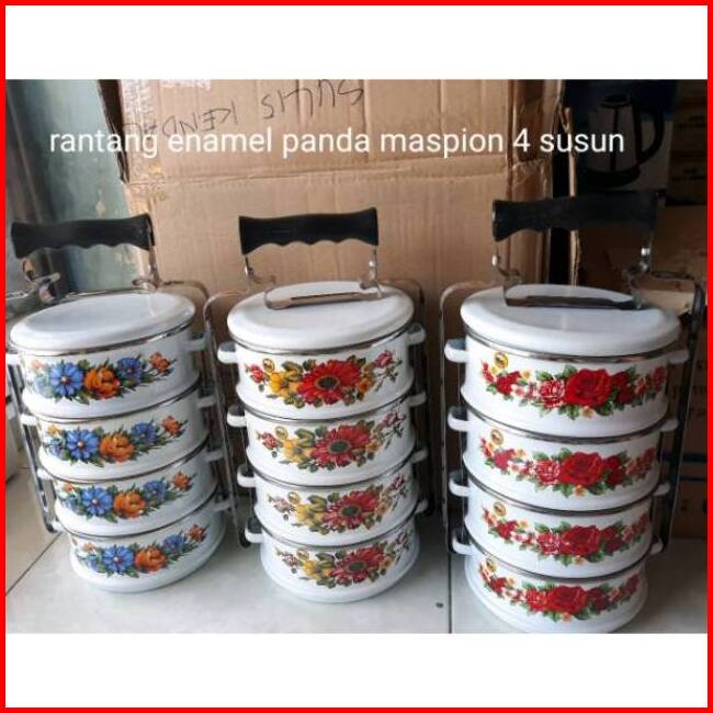 Food Carrier 4 Layer Rantang Enamel 4 Susun Panda Maspion 14cm